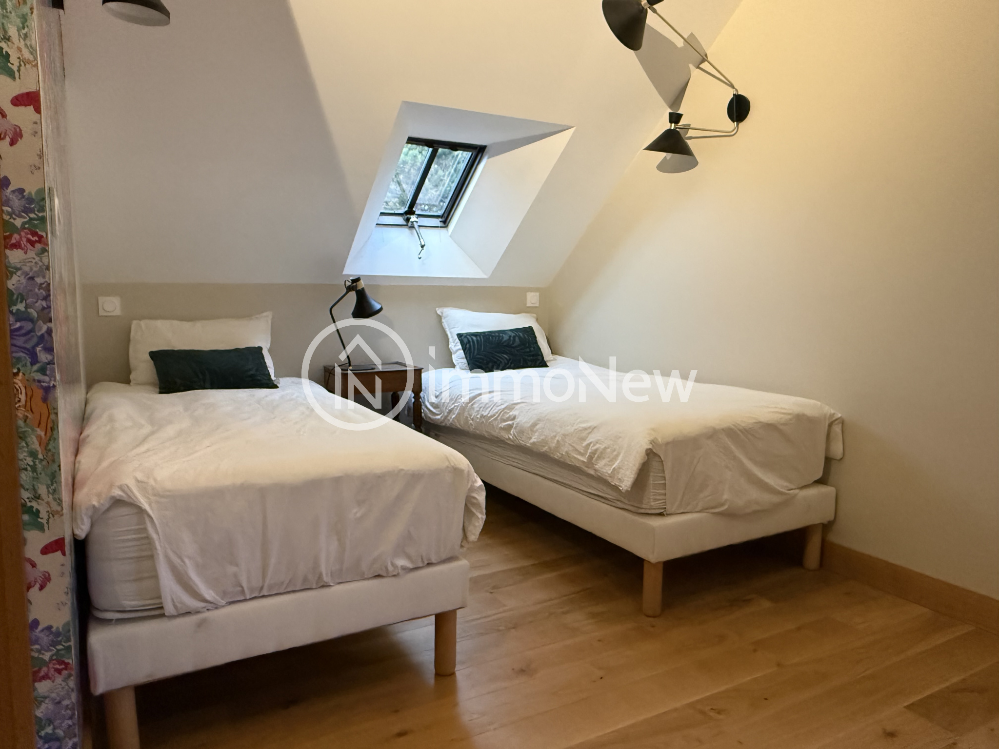 Maison louée meublée, pelouse tondue par robot déjà en place.