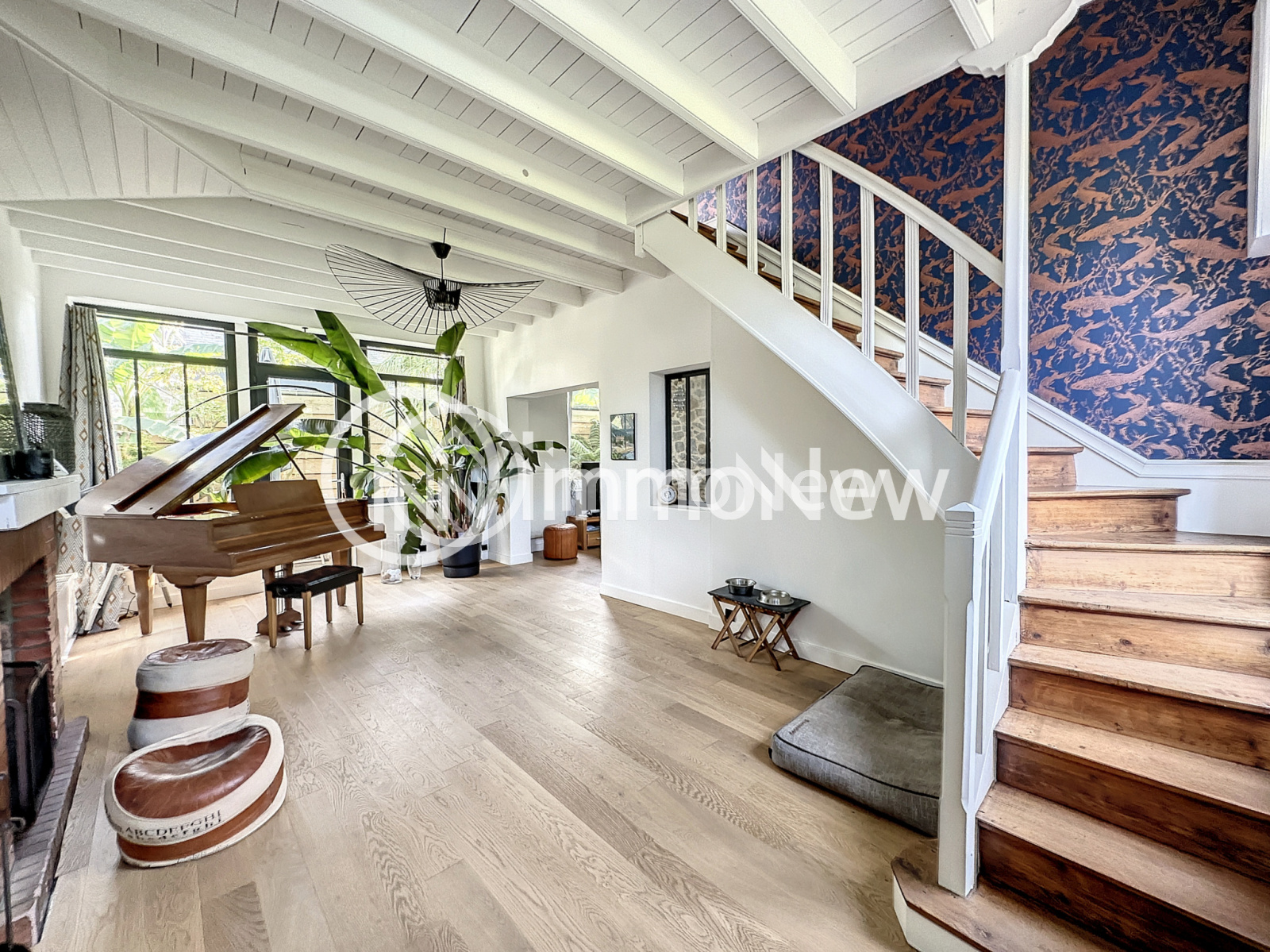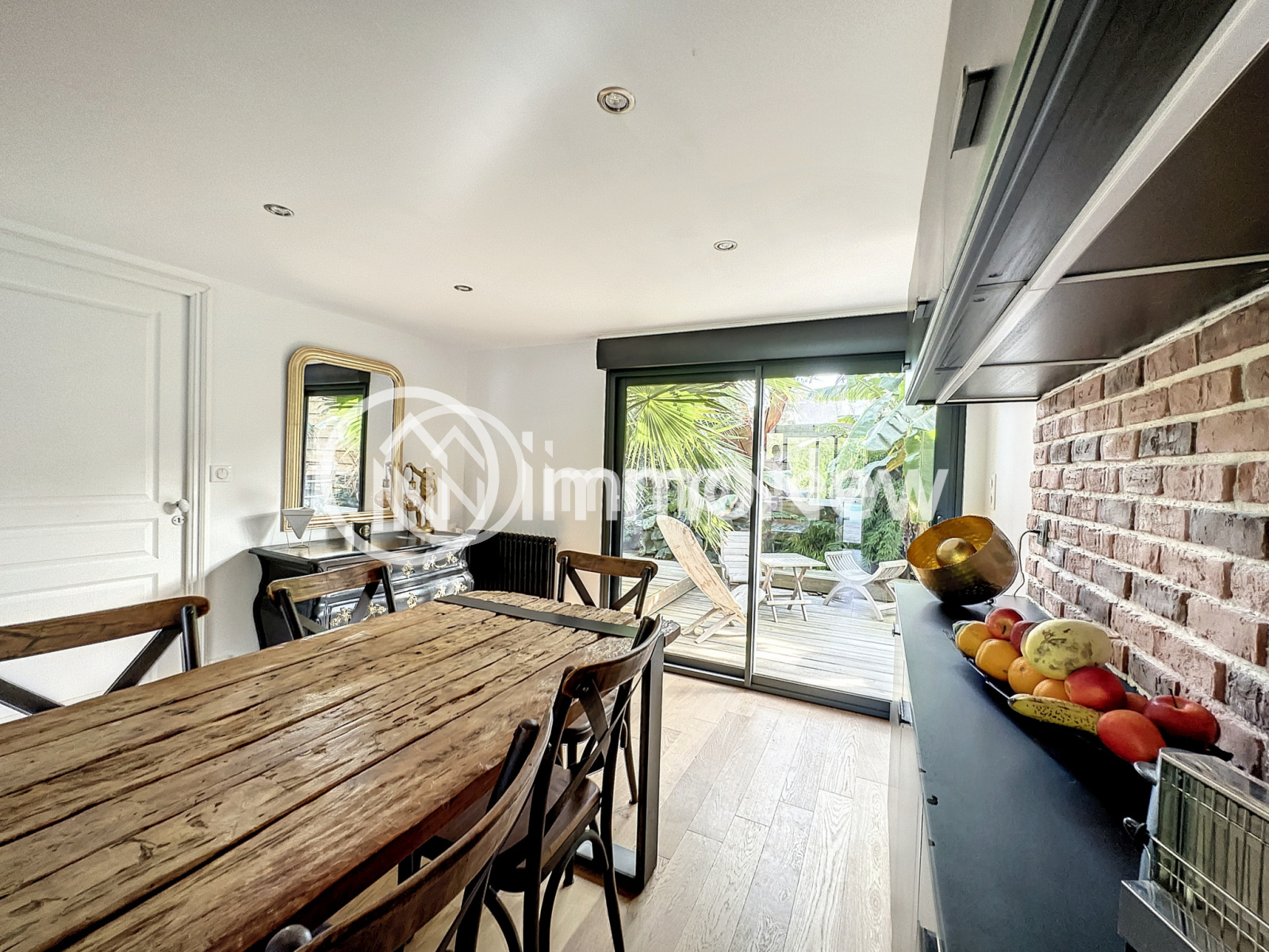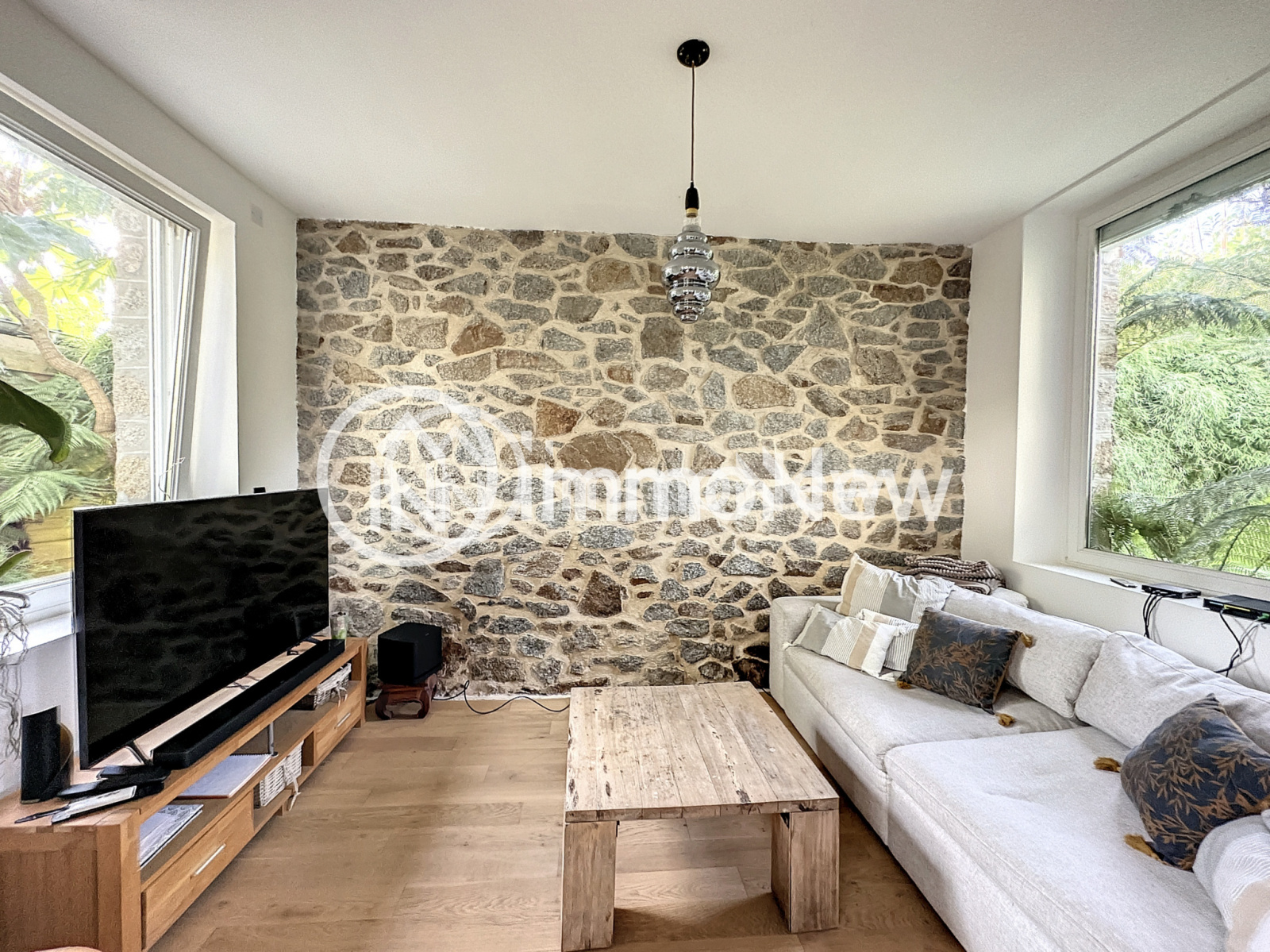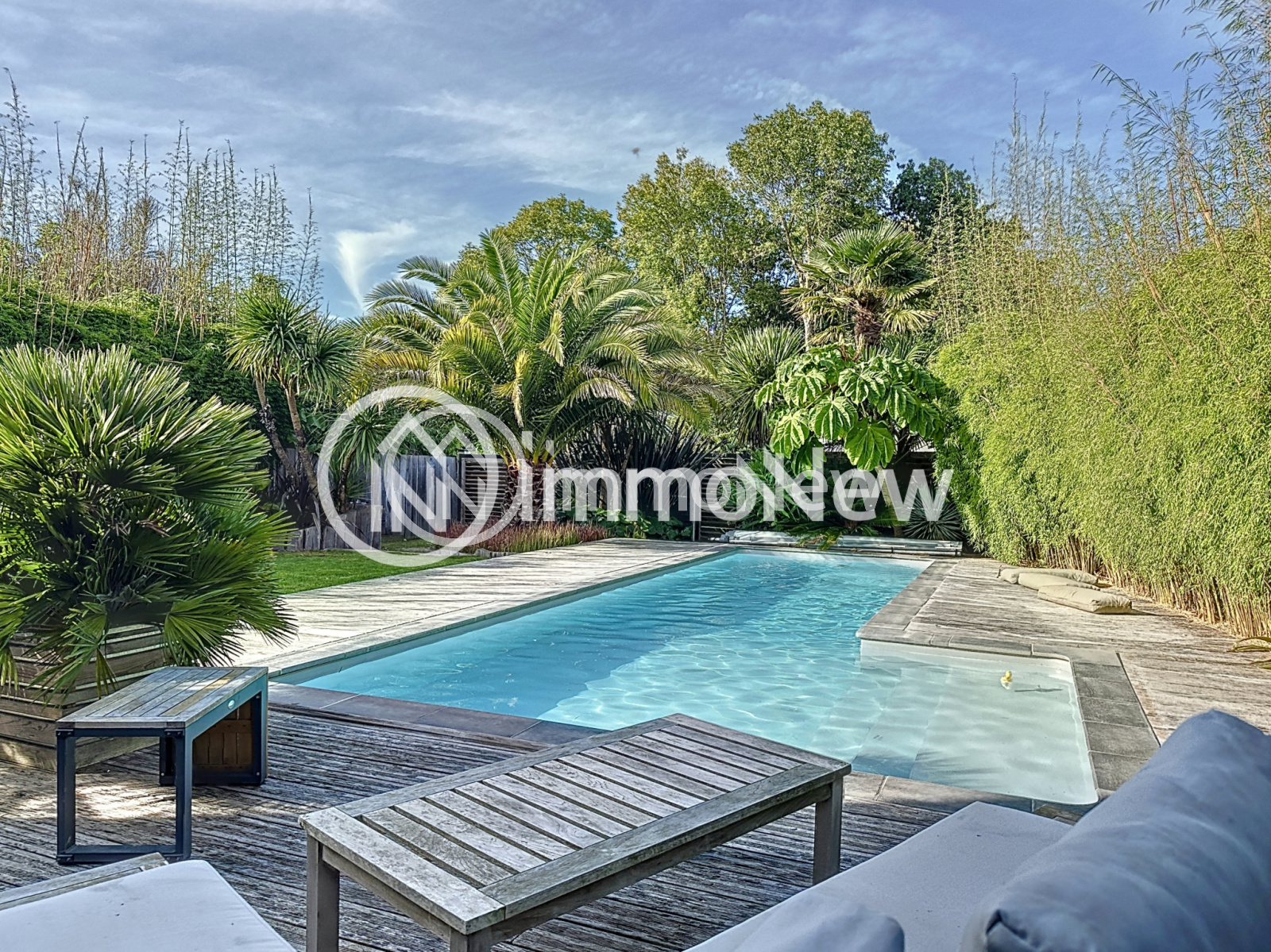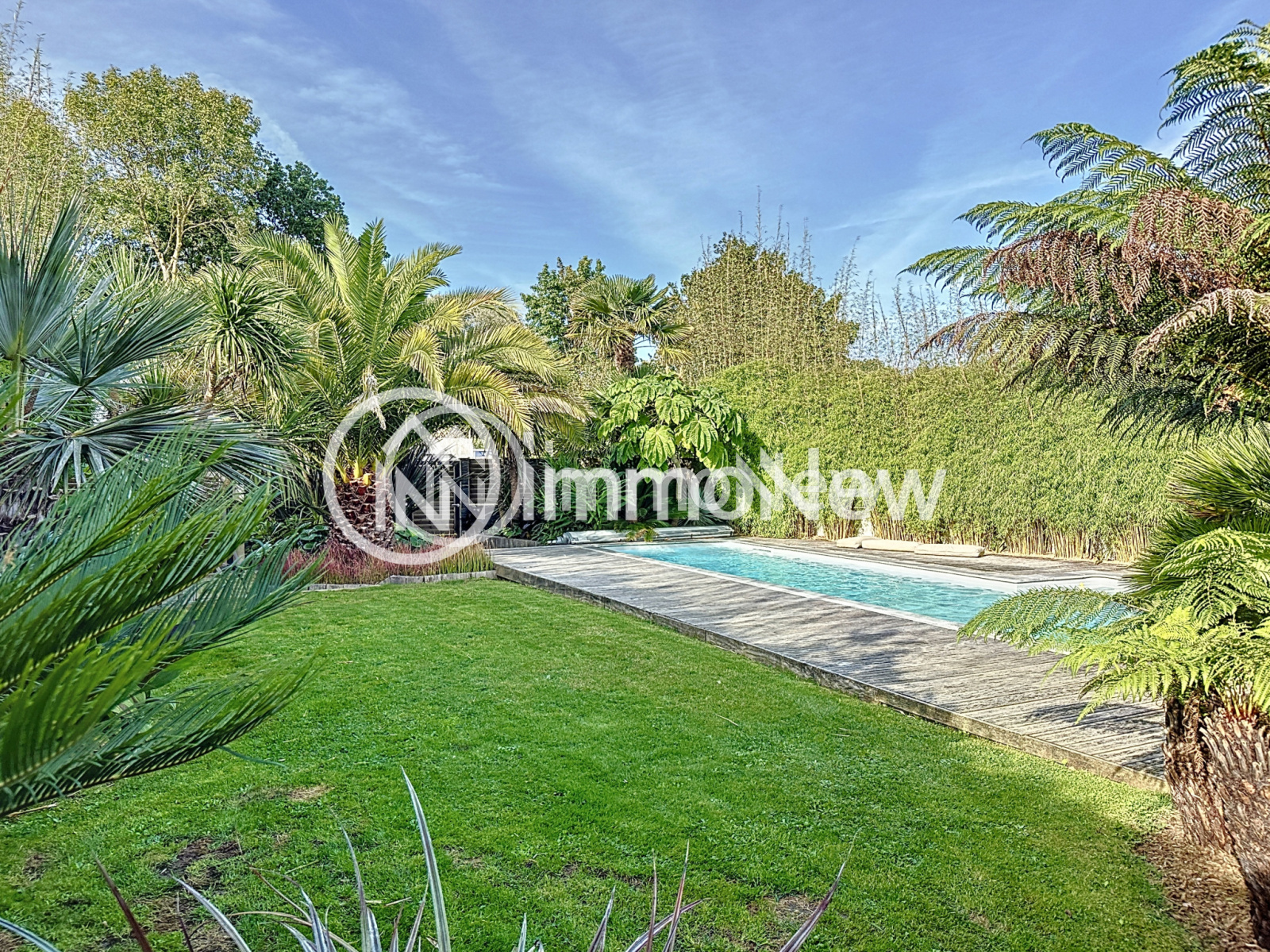 Cette maison est entourée d'un jardin luxuriant et arboré agrémenté d'une piscine chauffée et de deux terrasses.