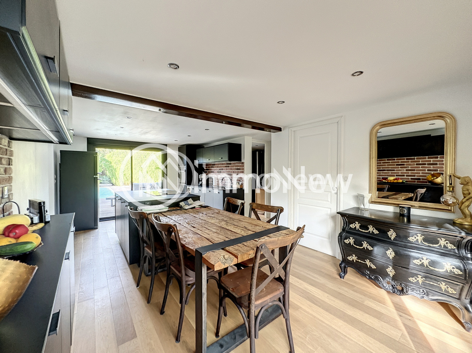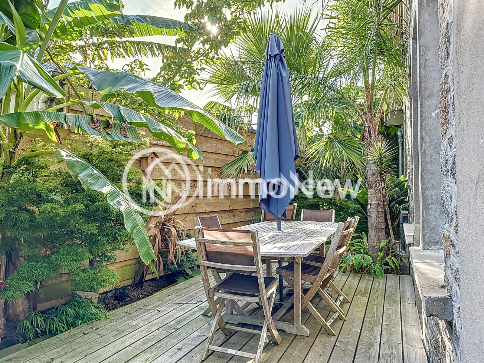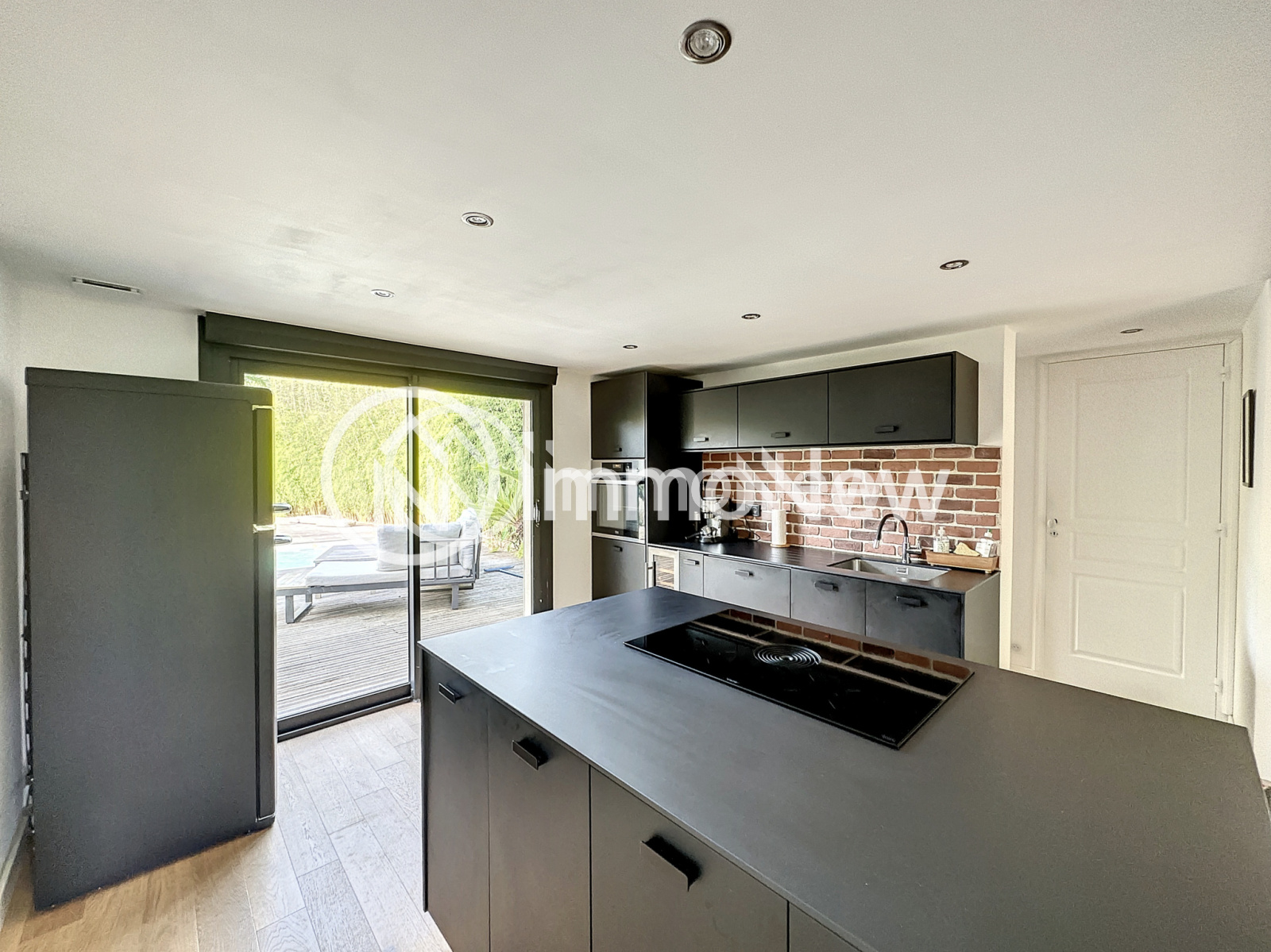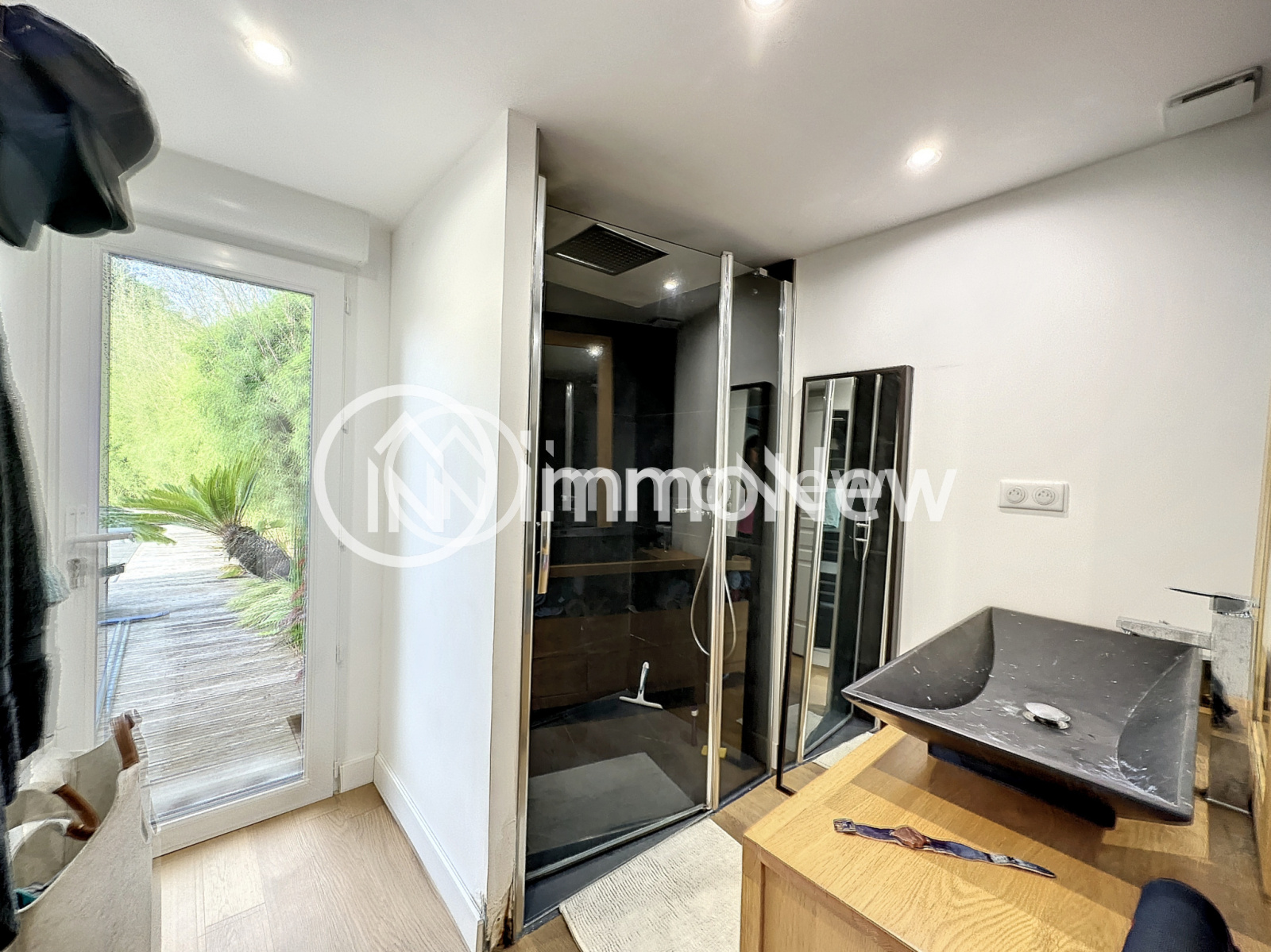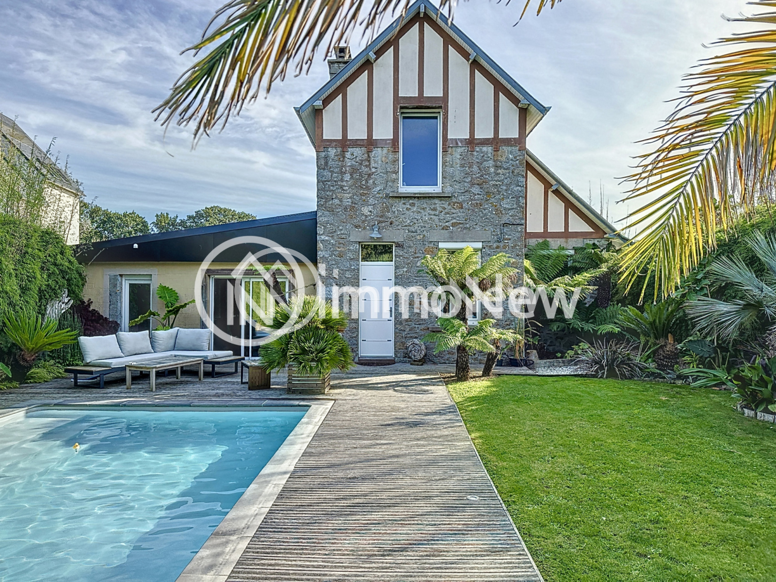 Cette maison est entourée d'un jardin luxuriant et arboré agrémenté d'une piscine chauffée et de deux terrasses.