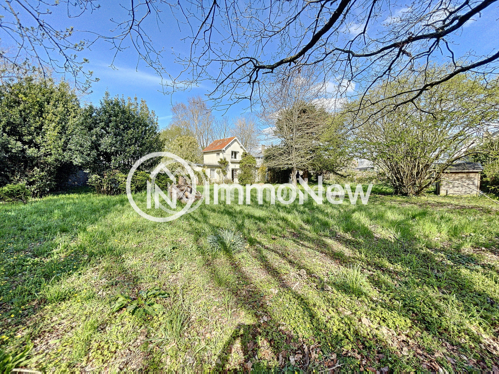 Un cabanon de jardin avec douche, WC et lavabo, le tout sur un terrain de 1099 m².
