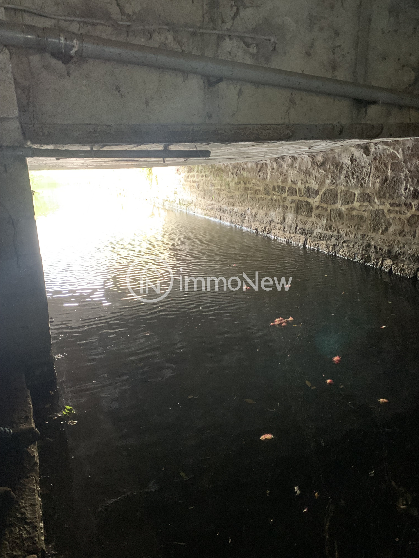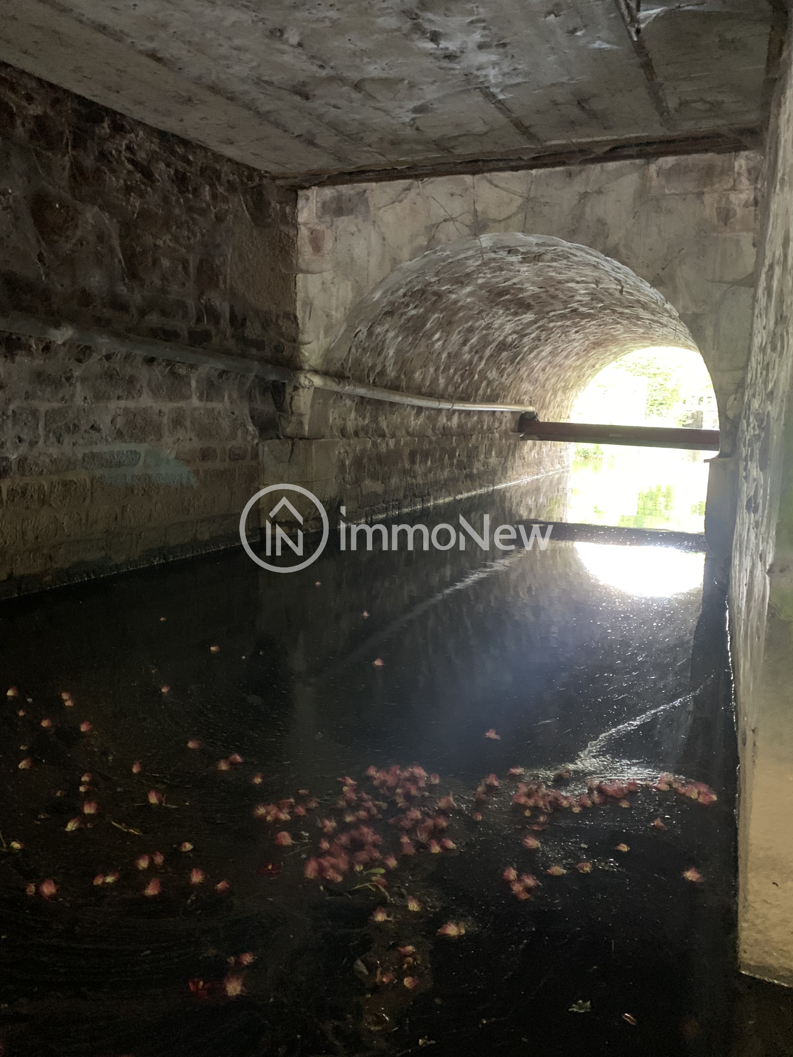 A l'exterieur une cour close et arborée avec Garage. Un accès exterieur permets d'accèder au lit de la rivière et aux fondations importantes/sécurisantes de cette maison construite comme un moulin.