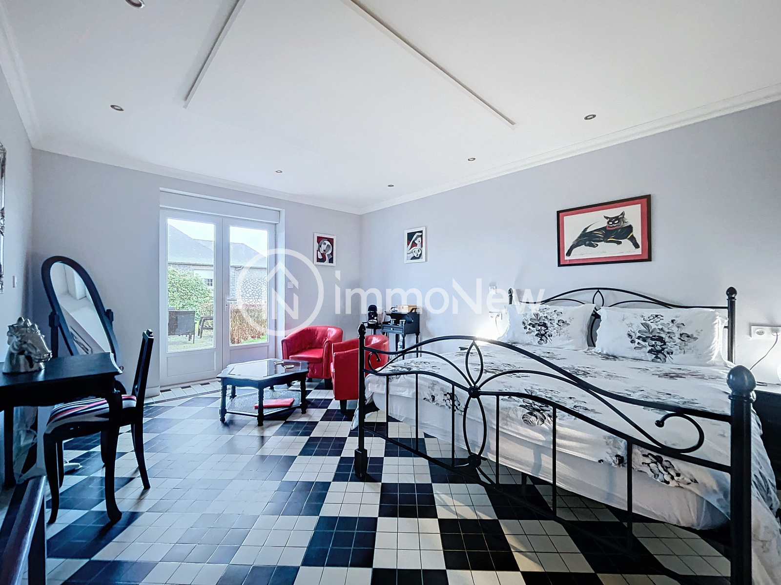 -A l'étage : une pièce faisant office de garde pour le linge, une suite avec deux chambres et une salle d'eau, une grande chambre avec salle d'eau.