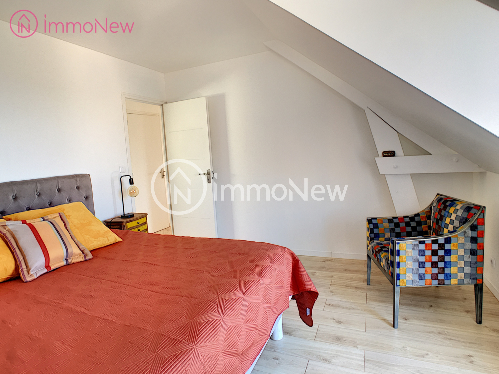 Contactez dès à présent IMMONEW si vous voulez planifier une visite. L'espace intérieur en rez-de-jardin comprend une réception, une valiserie, un coin séjour et salon, un espace cuisine aménagée et équipée et une suite parentale avec salle de bain privative, un wc et des rangements. A l'étage, 2 chambres, une salle de bain, un wc, et un salon d'étage.
