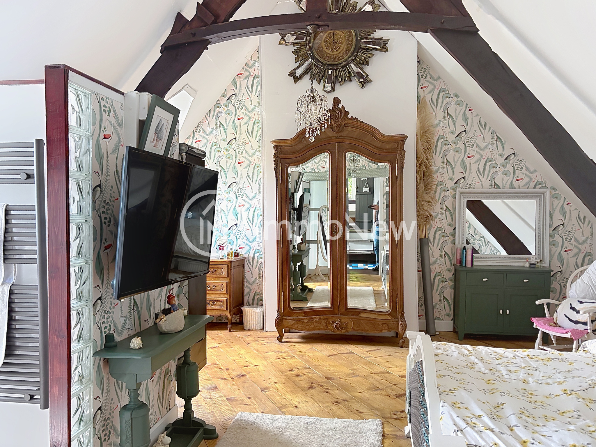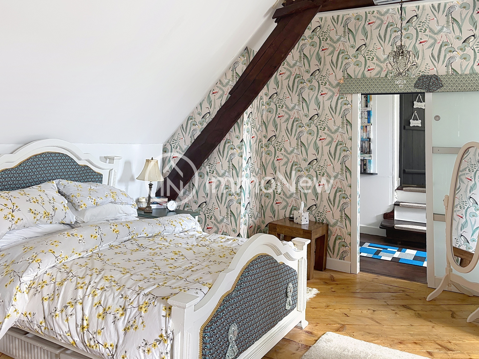 Sourdeval (50150)IMMONEW vous présente sur la commune de SOURDEVAL, à 5 minutes du centre, au calme, cette magnifique maison de 116 m2 sur un beau terrain de 2127 m2. Cette maison, décorée avec goût, se compose au rez-de-chaussée d'un séjour/salon avec son poêle à bois, une cuisine équipée avec son îlot, buanderie, wc, véranda avec salle à manger. Au premier étage, un palier, deux chambres avec chacune leur propre salle d'eau. Le terrain verdoyant, parfaitement entretenue et joliment arboré, donne sur une belle exposition plein sud. On retrouve un abri de jardin. Ce bien habitable de suite à un assainissement conforme, absence d'amiante et de plomb. Venez vite découvrir ce bien exceptionnel.