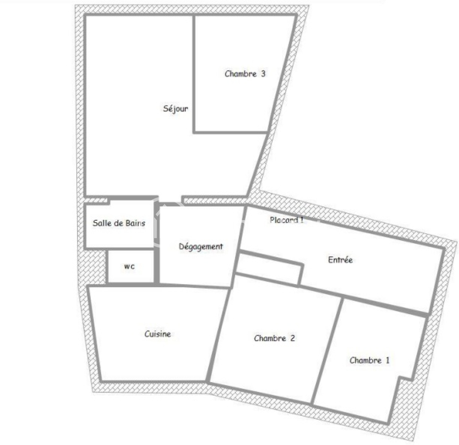 Il se compose comme suit : une entrée, un séjour, une cuisine, une salle de bains, 3 chambres et un wc.