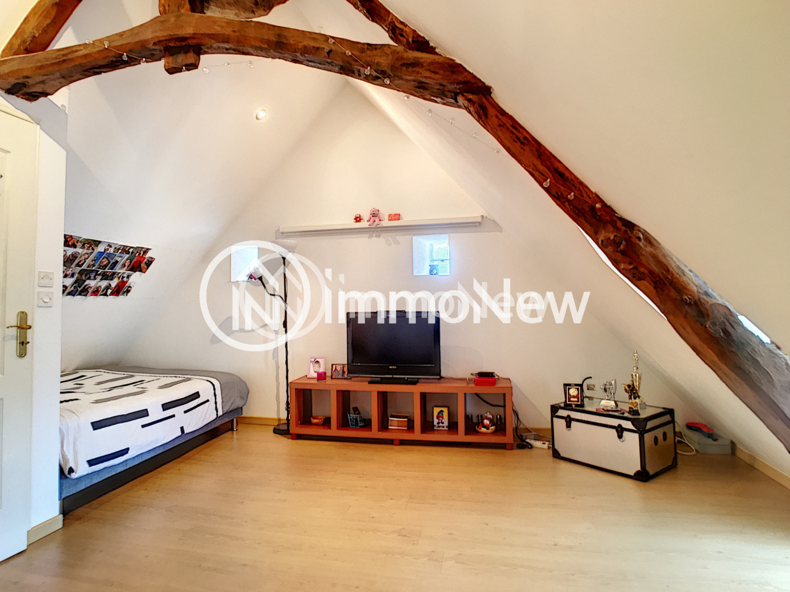 Au dernier étage, un bel espace vous offrant une belle chambre supplémentaire ou la pièce idéale pour votre home cinéma, avec le charme des poutres apparentes.