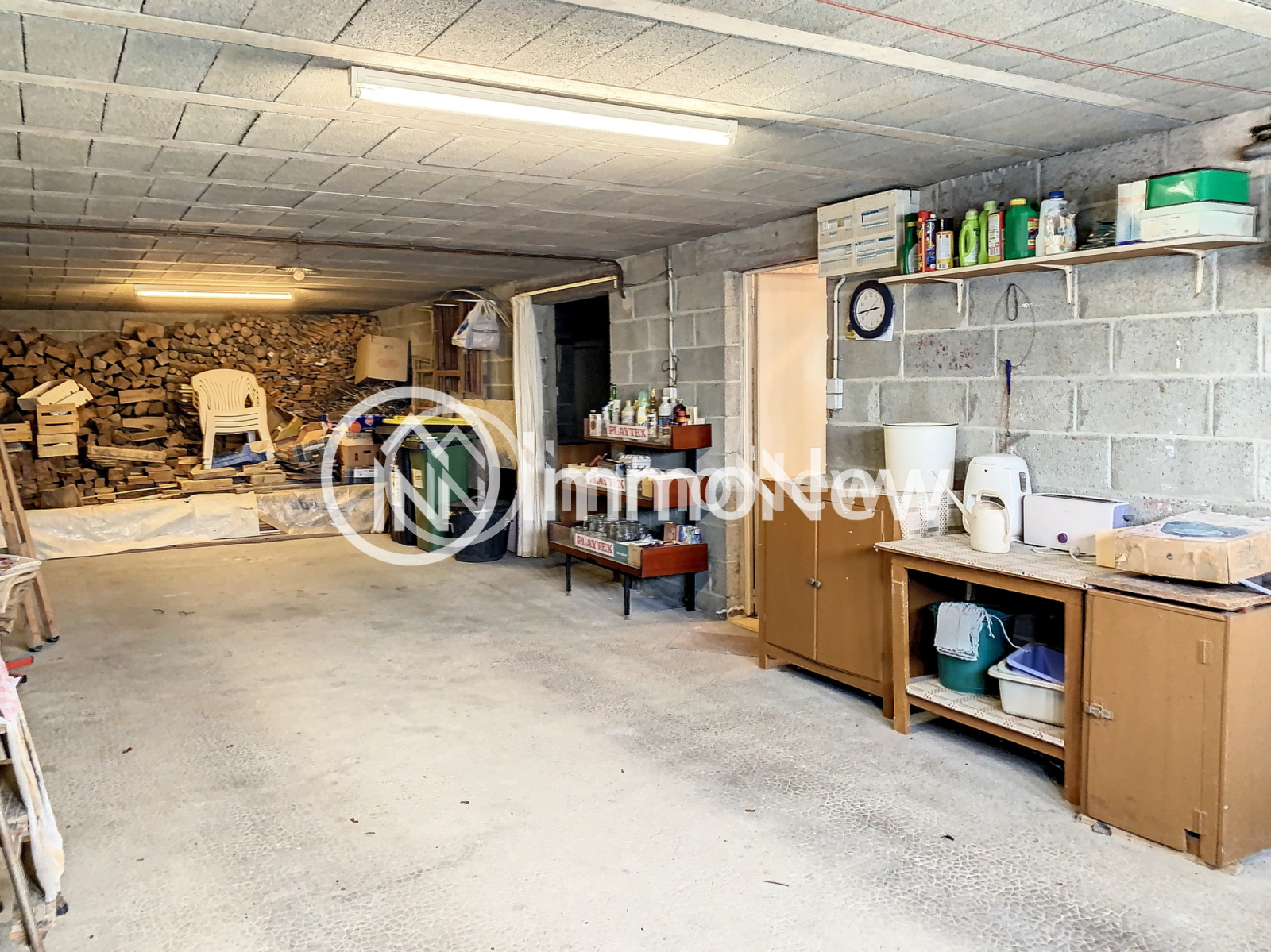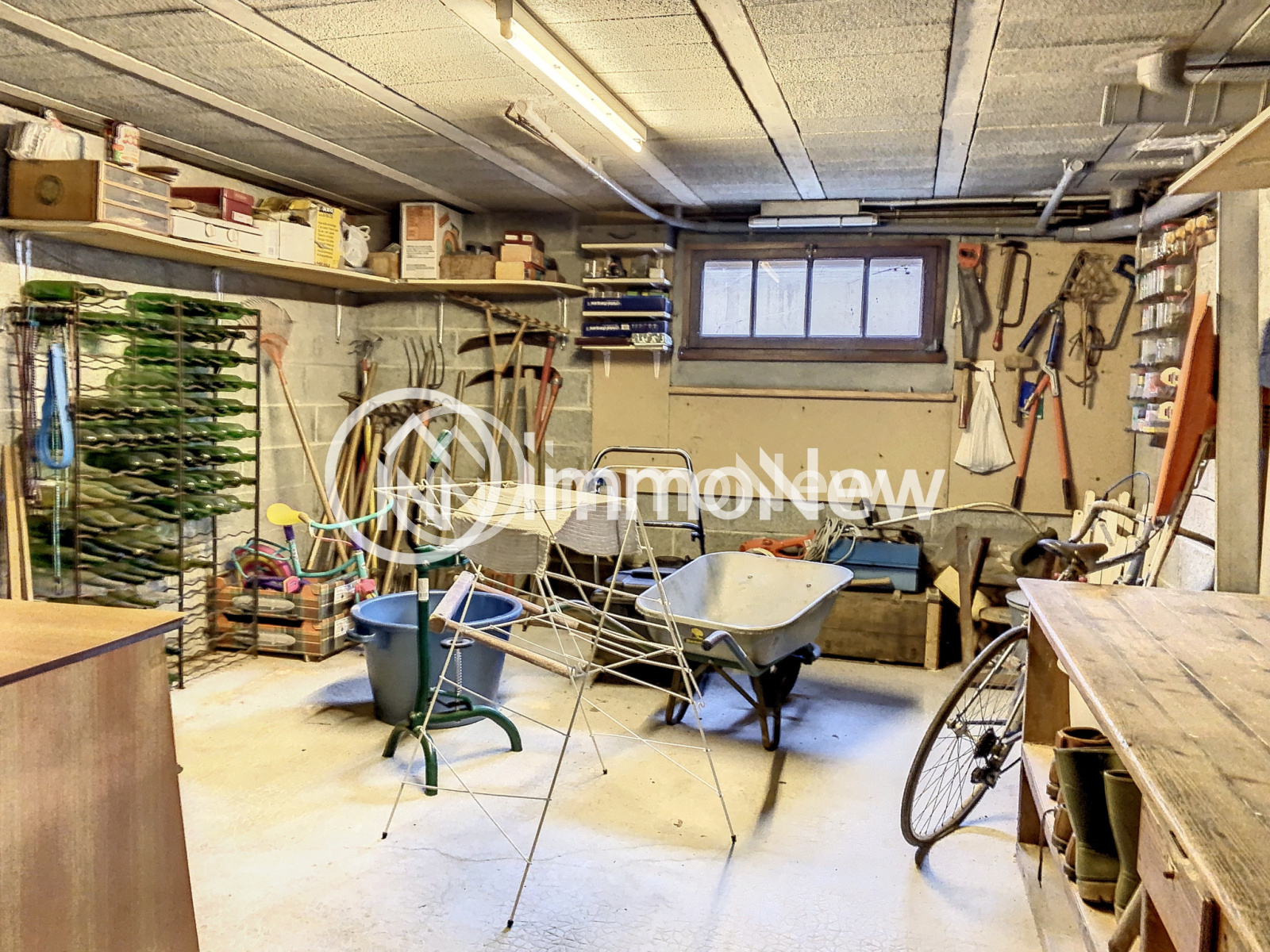 Sous sol complet avec atelier, cave, arrière cuisine/buanderie avec cheminée et grands garages. A l'exterieur, terrain arboré, terrasse dallée et cour bitumée, vue dégagée sur Percy.
