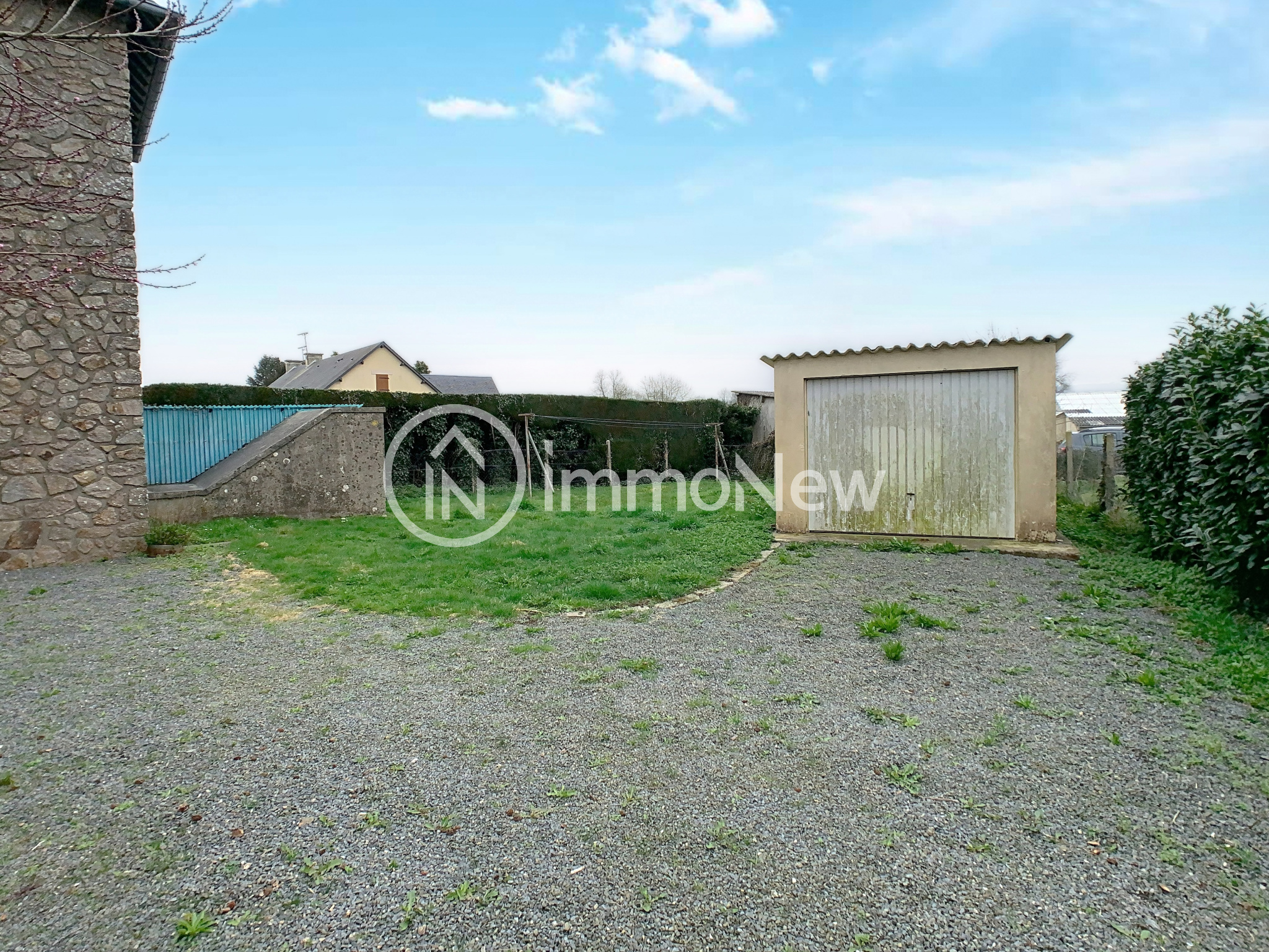 L'extérieur est composé d'un jardin clos et arboré, d'une cour gravillonnée, d'un accès à la cave et un garage.