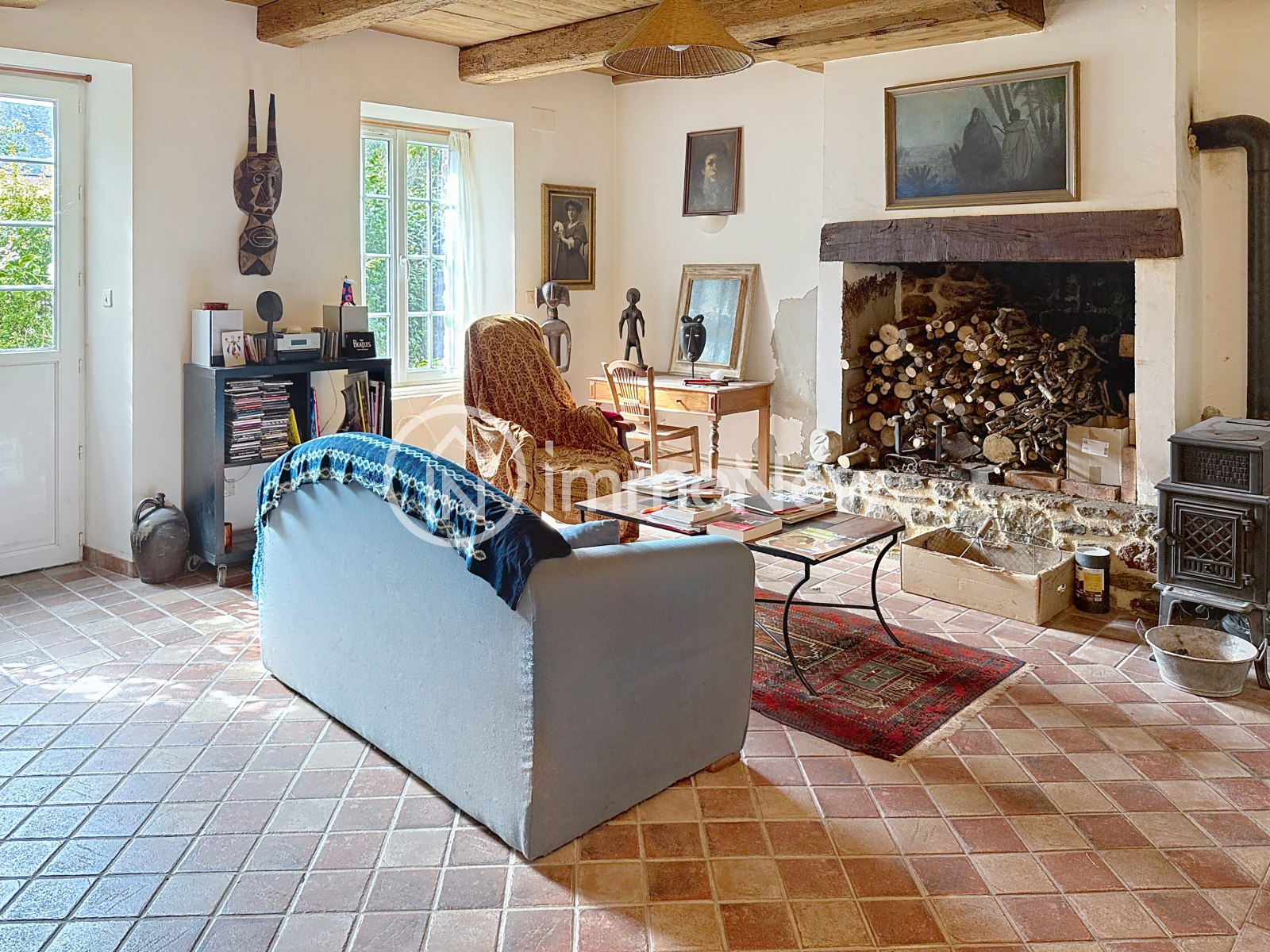 Au rez-de-chaussée: un séjour avec cheminée, une cuisine aménagée, un salon, un wc.