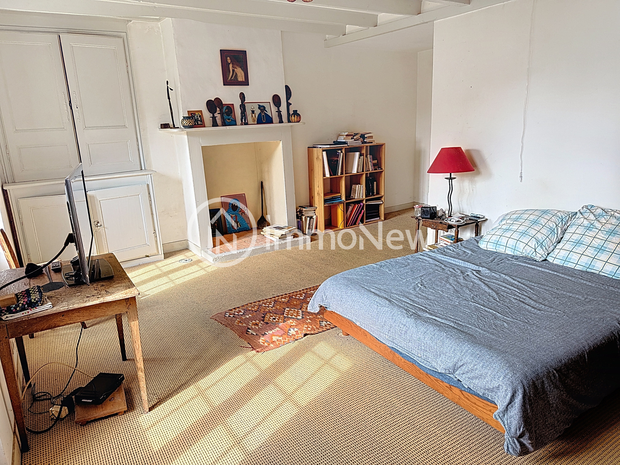 A l'étage: deux chambres dont une en mezzanine, une salle de bains