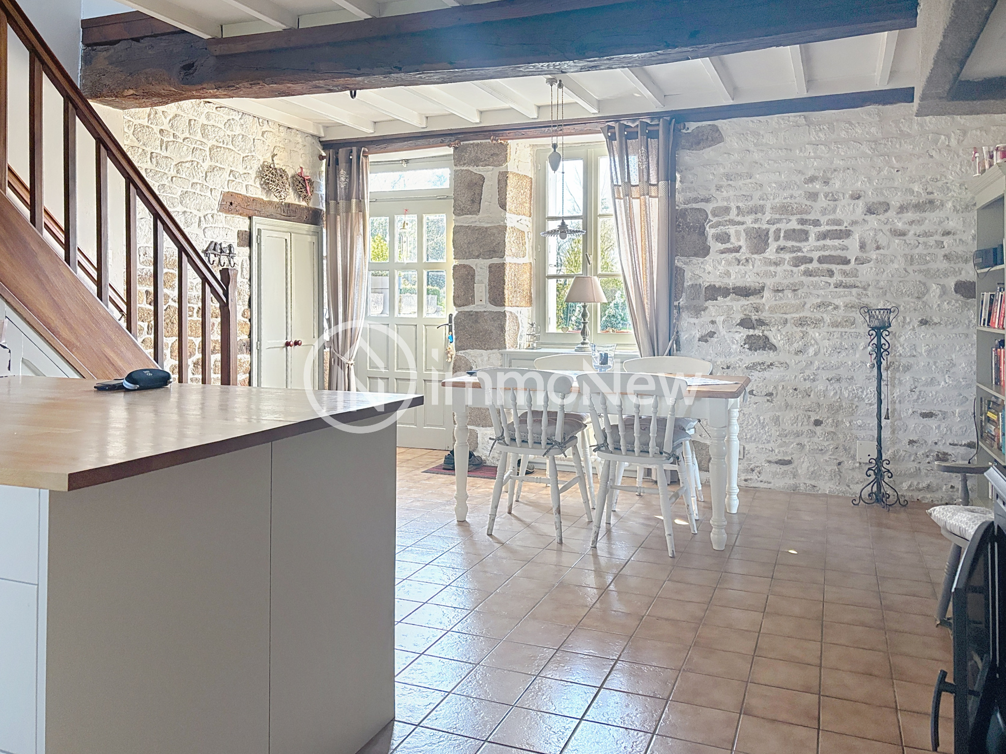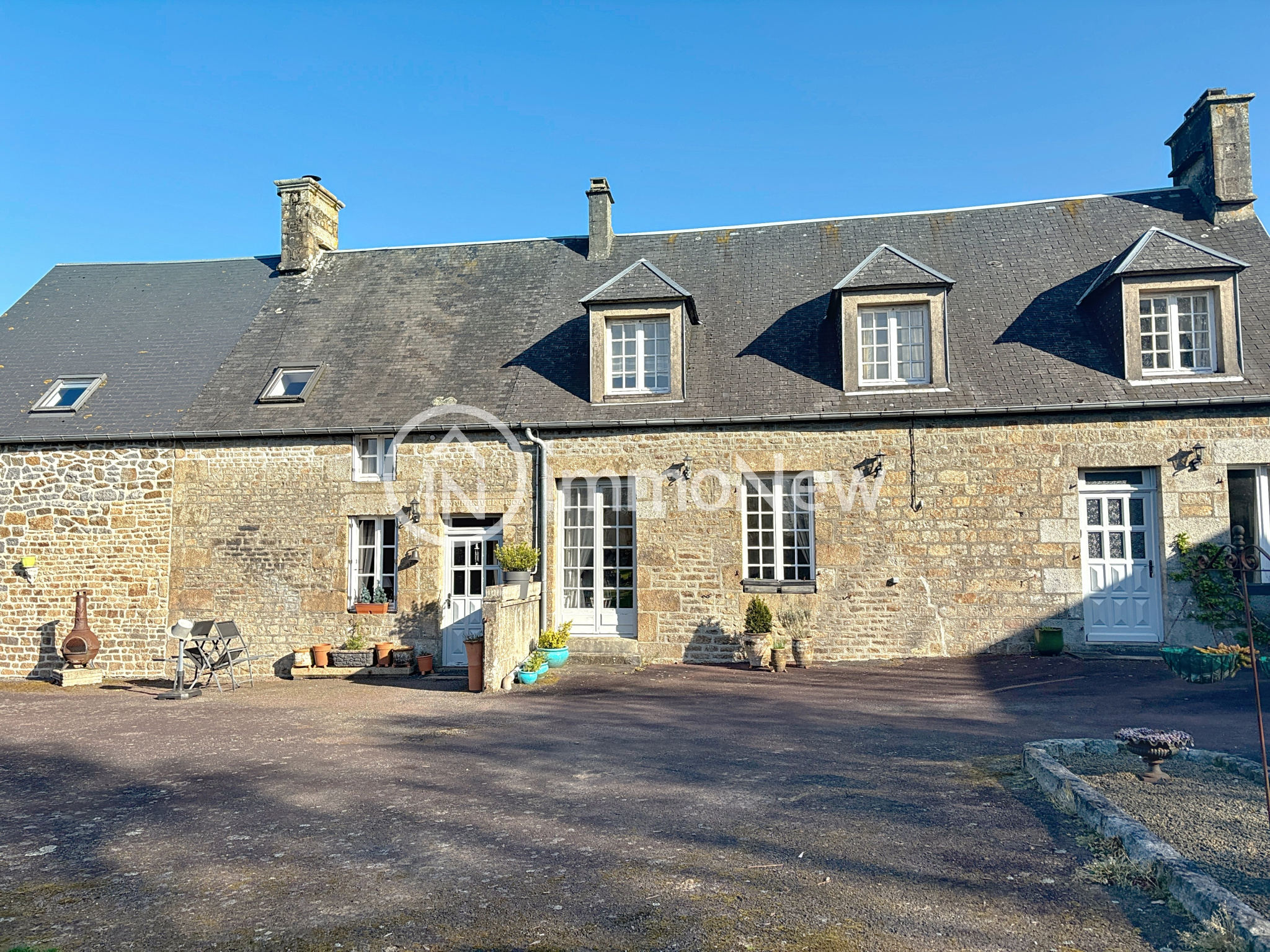 Coulouvray-Boisbenâtre (50670)IMMONEW vous présente sur la commune de COULOUVRAY BOISBENATRE, à 10 minutes de villedieu les poêles, 30 minutes d'Avranches, proche du bourg à pied, cette belle longère de 200 m2 se répartit sur un terrain de 5370 m2. Cette maison construite en 1806 dont on retrouve la gravure sur le linteau d'entrée, se compose au rez de chaussée d'un beau salon de 25 m2 environ avec accès sur la terrasse exterieure, une cuisine entièrement équipée de 25 m2, une buanderie de 7 m2, un deuxième salon de 14 m2 qui peut etre transformé en chambre avec une salle d'eau juste à côté. A l'étage, on retrouve 3 chambres allant de 9 à 10 m2 chacune, une salle d'eau de 4 m2 et un espace bureau 6 m2 environ. Au même niveau, on retrouve une belle suite parentale avec dressing et salle d'eau le tout sur une surface de 30 m2. Attenant à la maison, se situe un gîte composé d'une cuisine avec salon, une salle d'eau et à l'étage deux chambres. Ce gîte permet de générer des revenus supplémentaires. Sur les extérieurs parfaitement entretenus, on retrouve une dépendance, un garage. Venez vite visiter ce bien dont l'authenticité a été préservée avec ses pierres apparentes et son parquet bois. Si ce bien vous intéresse, contactez votre conseiller EI Thomas Lemarechal au [Coordonnées masquées], E-mail: [Coordonnées masquées], agent commercial en immobilier immatriculé au RSAC de Coutances sous le numéro 750 065 682
