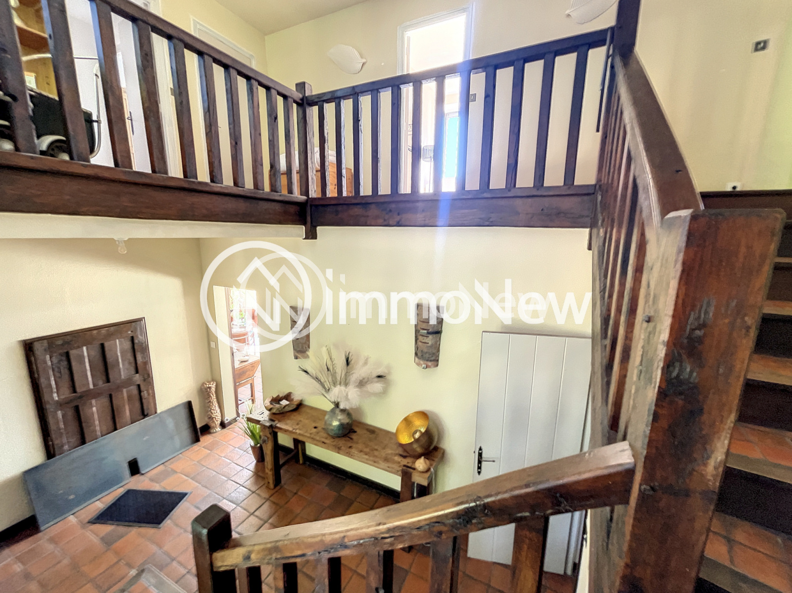 Au rez-de-chaussée: une vaste entrée, un séjour / salle à manger avec cheminée, une cuisine aménagée, une buanderie, un bureau, un wc.