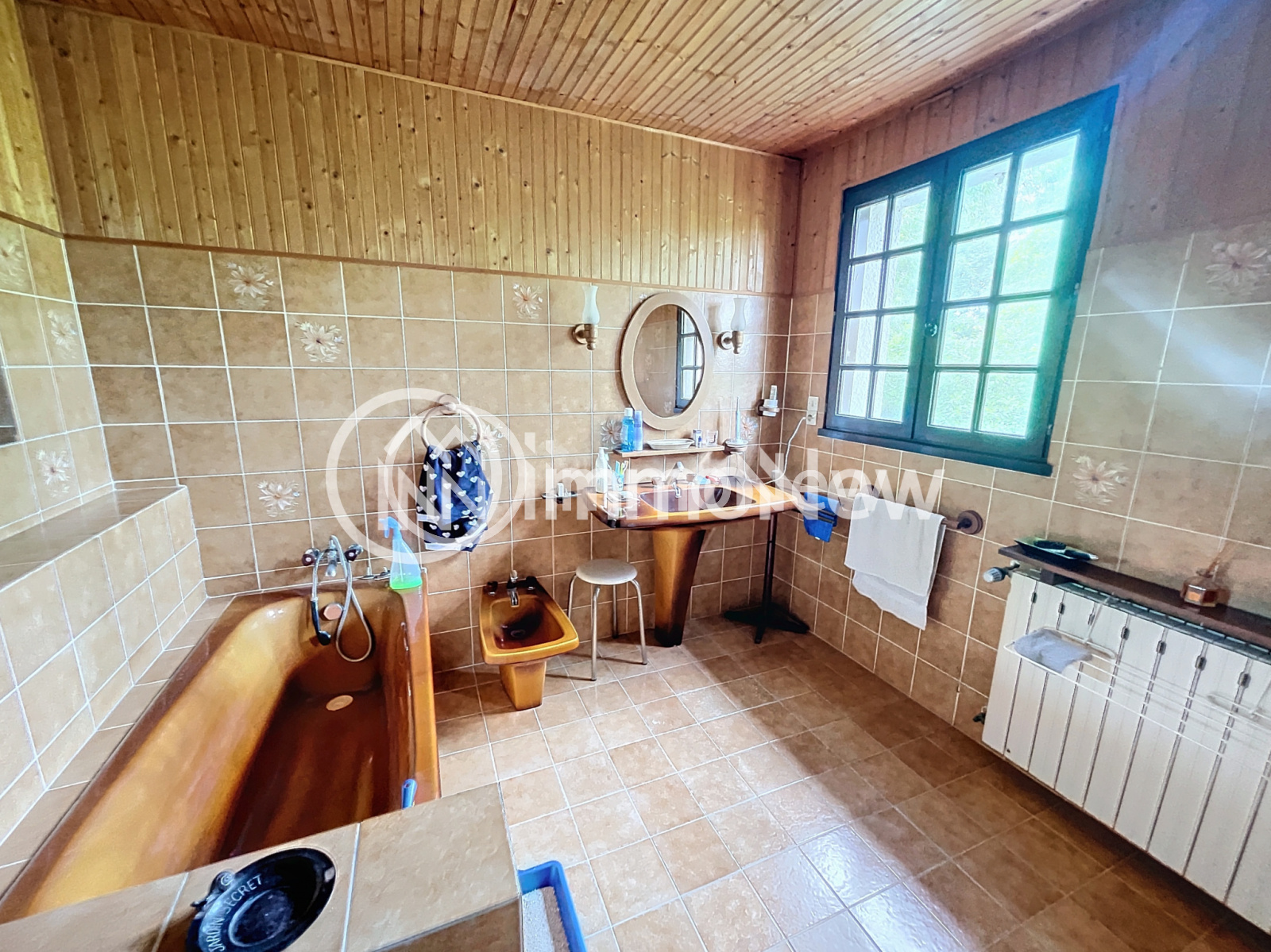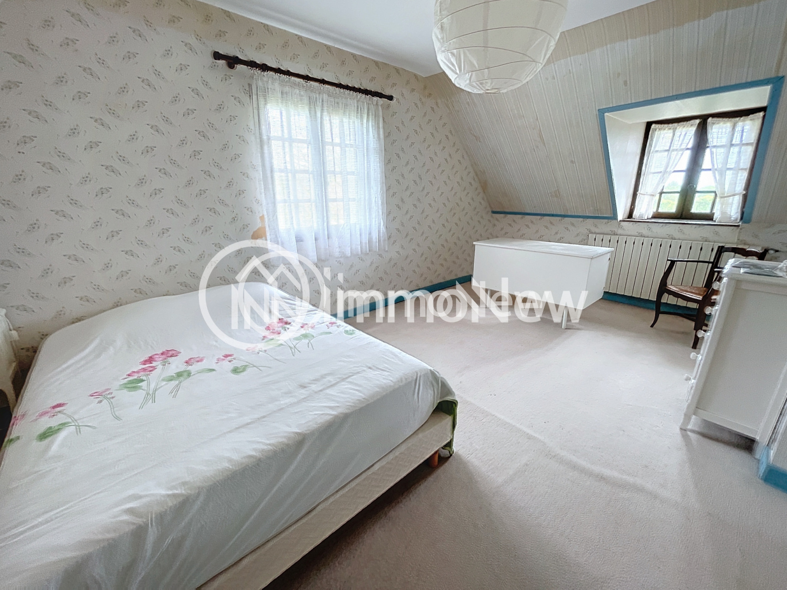 A l'étage : trois chambres dont une avec dressing, une salle d'eau, un wc et un grenier.