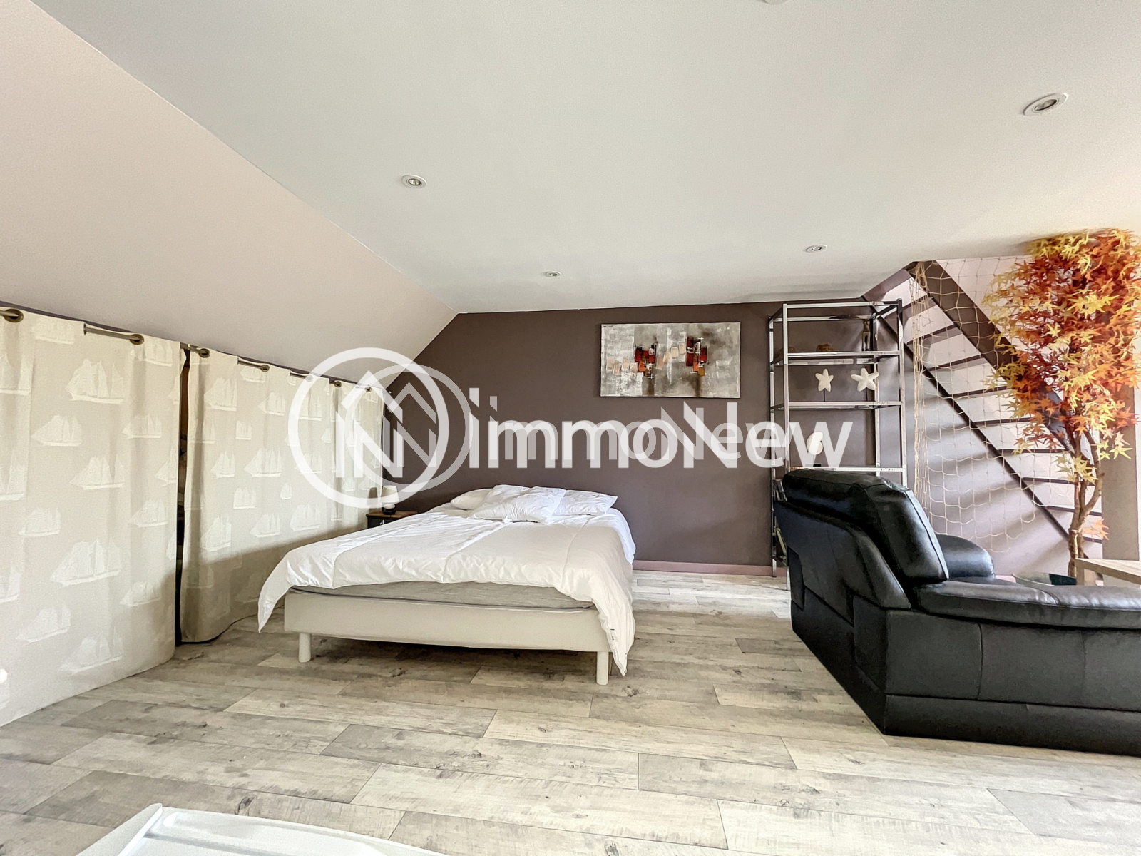 Un logement de type F2 attenant et indépendant, idéal pour recevoir ou pour un projet de location saisonnière ou gîte. Cet appartement comprend : une entrée, une cuisine équipée et aménagée ouverte sur séjour, une salle d'eau, un WC, à l'étage : une grande mezzanine desservant une chambre, un Wc et une pièce sous comble.
