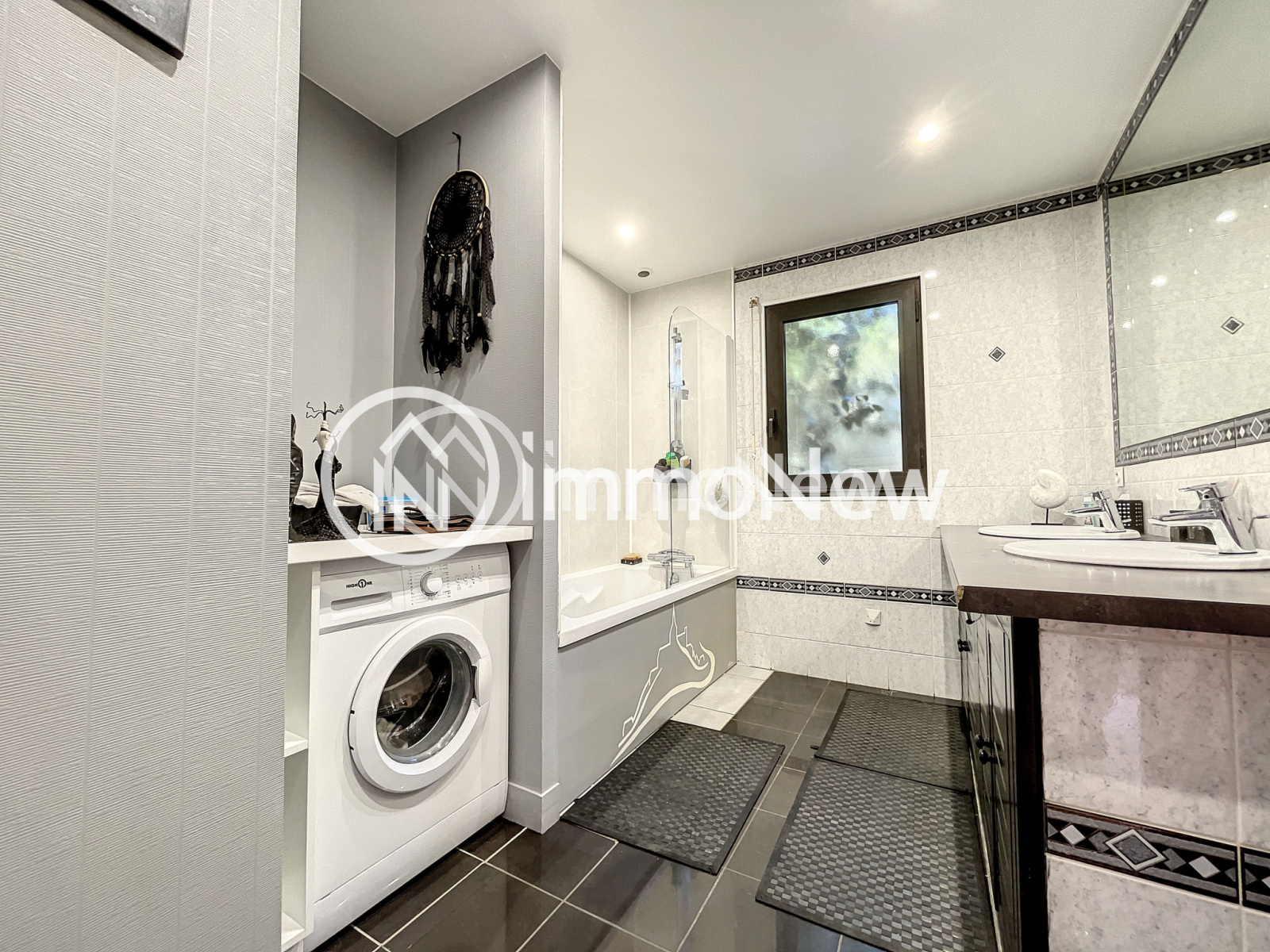 A l'étage : une mezzanine desservant 4 chambres (dont une grande avec espace mezzanine idéal pour bureau), terrasse traversante avec vue sur piscine, une salle de bains, un WC.