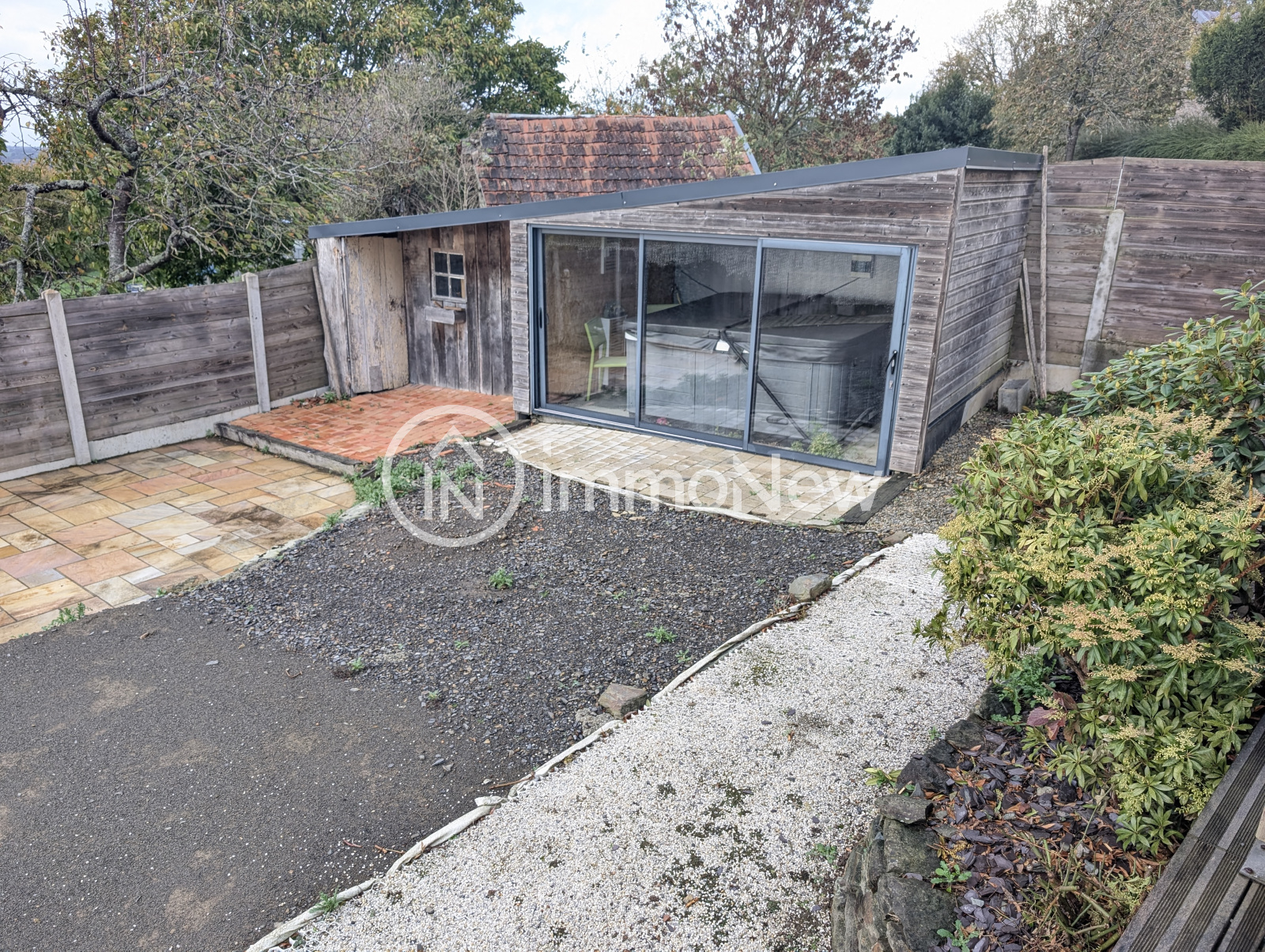 Les extérieurs, soigneusement aménagés, invitent à la détente avec une vaste terrasse et sa pergola, une pièce dédiée au jacuzzi, un parking en enrobé et deux abris de jardin. Le terrain, entièrement clos et sécurisé par un portail électrique.
