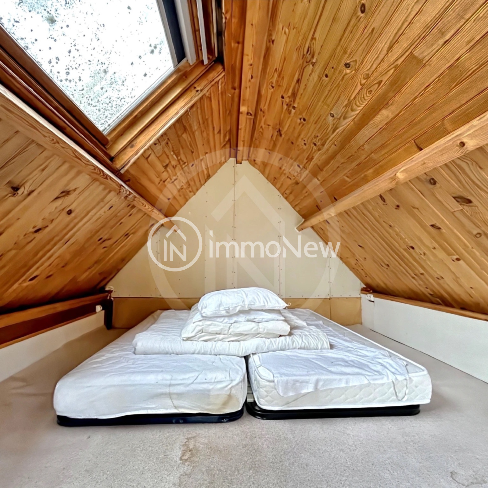 - à l'étage : une chambre sous pente accès depuis le séjour, une chambre sous pente accès par la véranda.