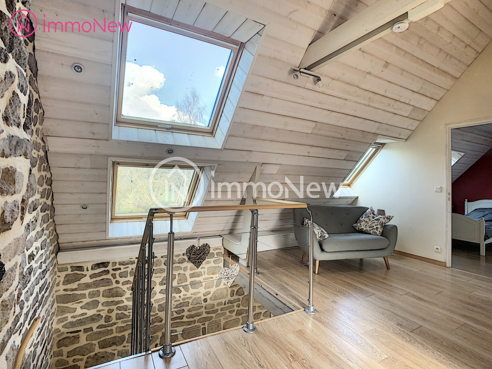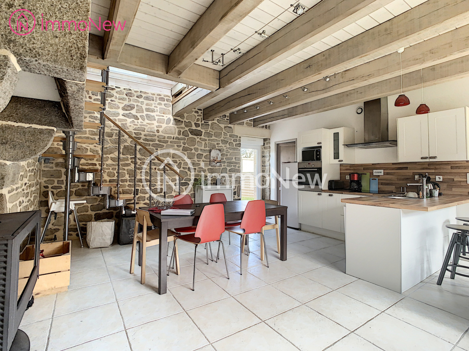 Jullouville (50610)Dans les arrières de JULLOUVILLE, à environ 3,5 km de la mer et des commerces, maison en pierres totalement rénovée de 110 m² composée de 3 chambres dont 1 au rez de chaussée avec salle d'eau. Le tout sur un terrain arboré de 1 663 m².