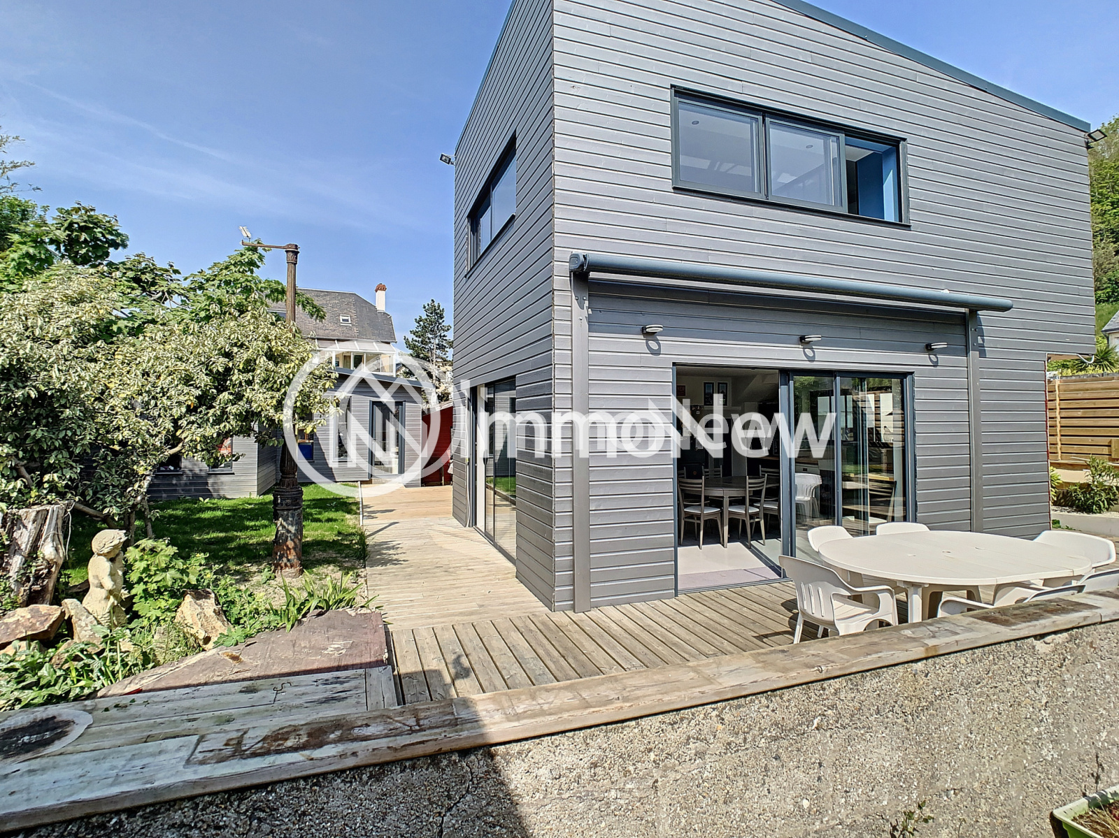 Jullouville (50610)Immonew vous présente cette maison Atypique à 350 m des plages sur la commune de Jullouville. Entre partie ancienne de 1960 et l'extention de 2013, celle-ci se divise en deux logements, idéal pour de la location saisonnière ou récèption d'hôtes.