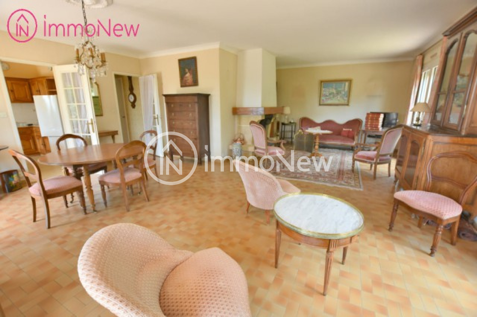 Un grand séjour salon lumineux avec cheminée et cuisine ouverte, 4 chambres, une salle d'eau, une salle de bains, un WC.