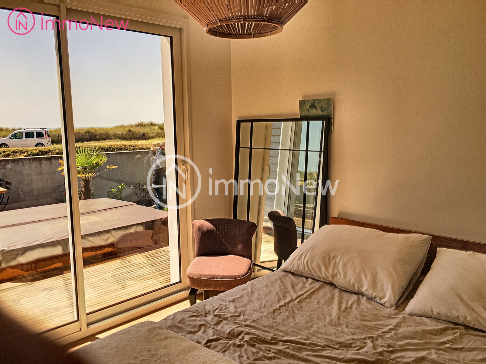 Saint-Pair-sur-Mer (50380)IMMONEW vous présente ce bel appartement avec jardin et appenti agencé avec goût et lumineux face à la mer, comprenant deux chambres, dont l'une vous donnant un accès direct sur la terrasse, une salle d'eau avec wc, une pièce de vie vous laissant le choix d' aménager à votre goût une cuisine. Une aire de stationnement privatif existant. Une belle terrasse avec son jacuzzi et la mer en face, vous permettant de profiter de la vue sur les Îles Chausey afin de prolonger vos soirées. A voir rapidement ! Copropriété de trois lots. Idéal pour du secondaire ou de l'investissement locatif.