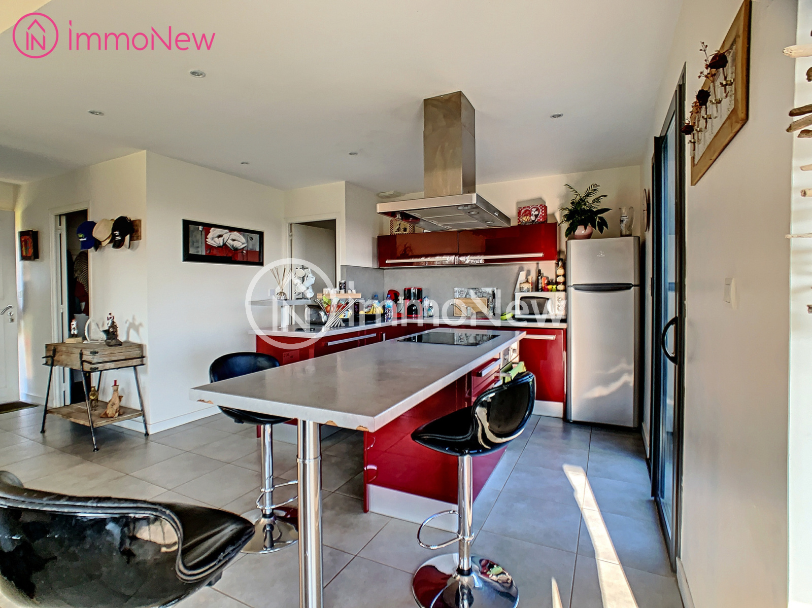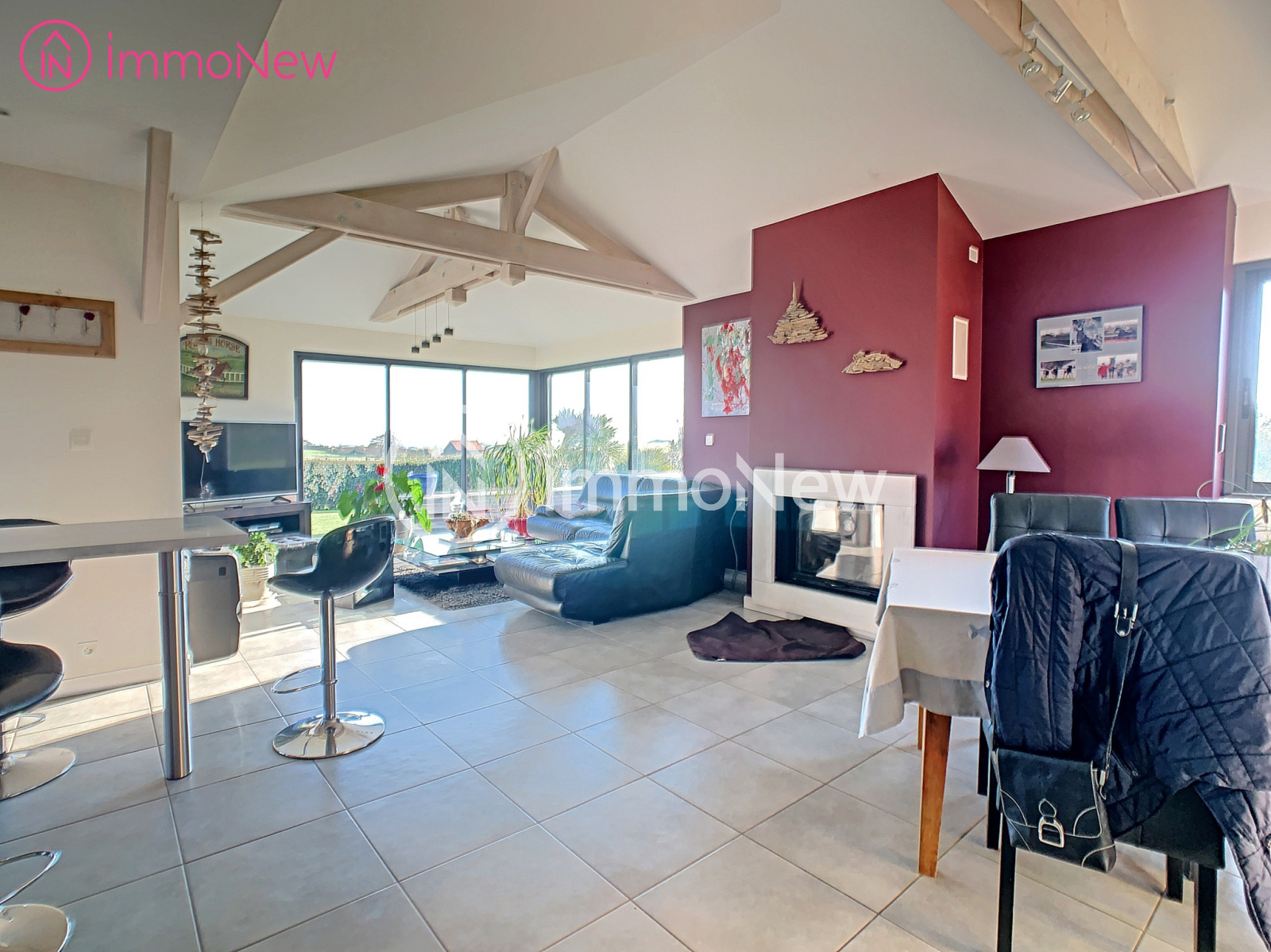 - une maison d'habitation de plain pied datant de 2009 comprenant : une entrée, un séjour salon cheminée, cuisine ouverte équipée et aménagée, un espace bureau, trois chambres, une salle d'eau, une buanderie.