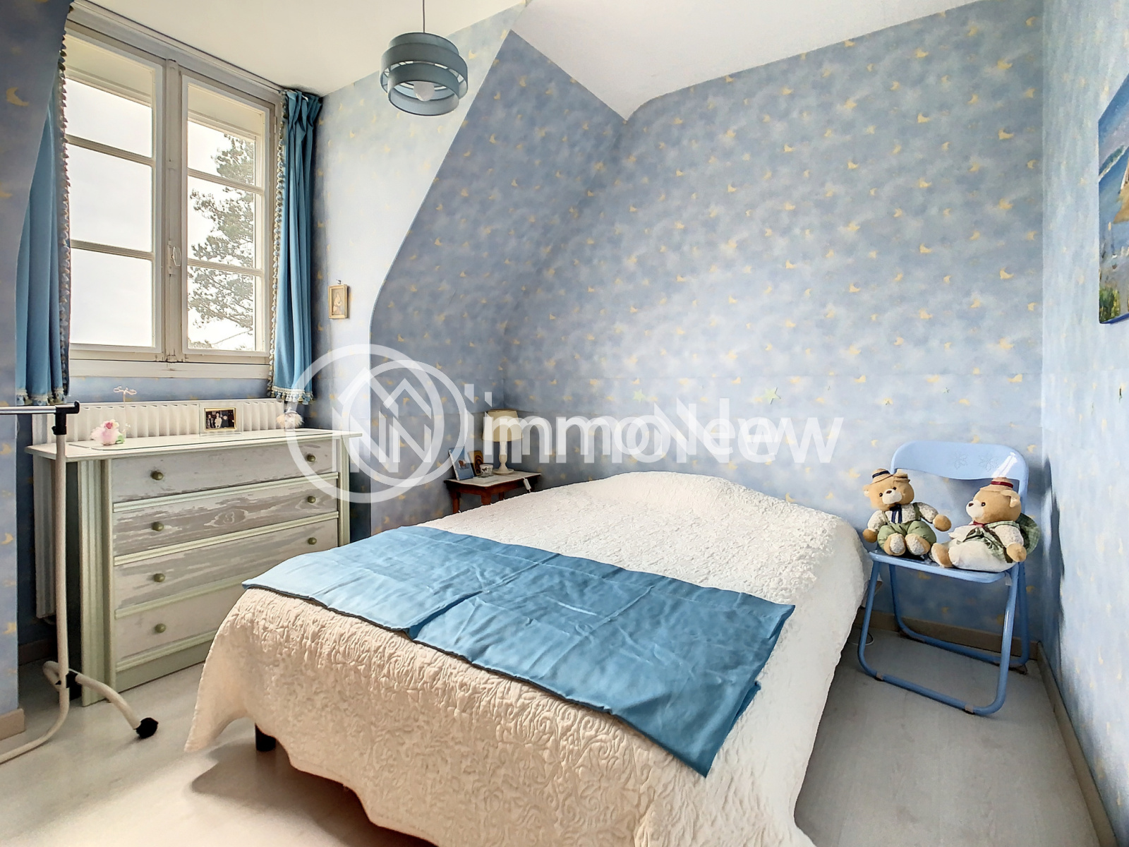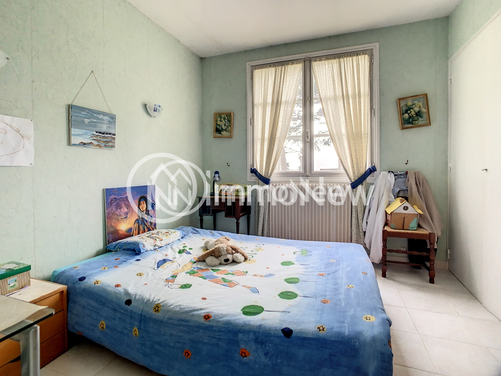 A l'étage, quatres chambres, un bureau, une salle d'eau, un wc et un grenier.