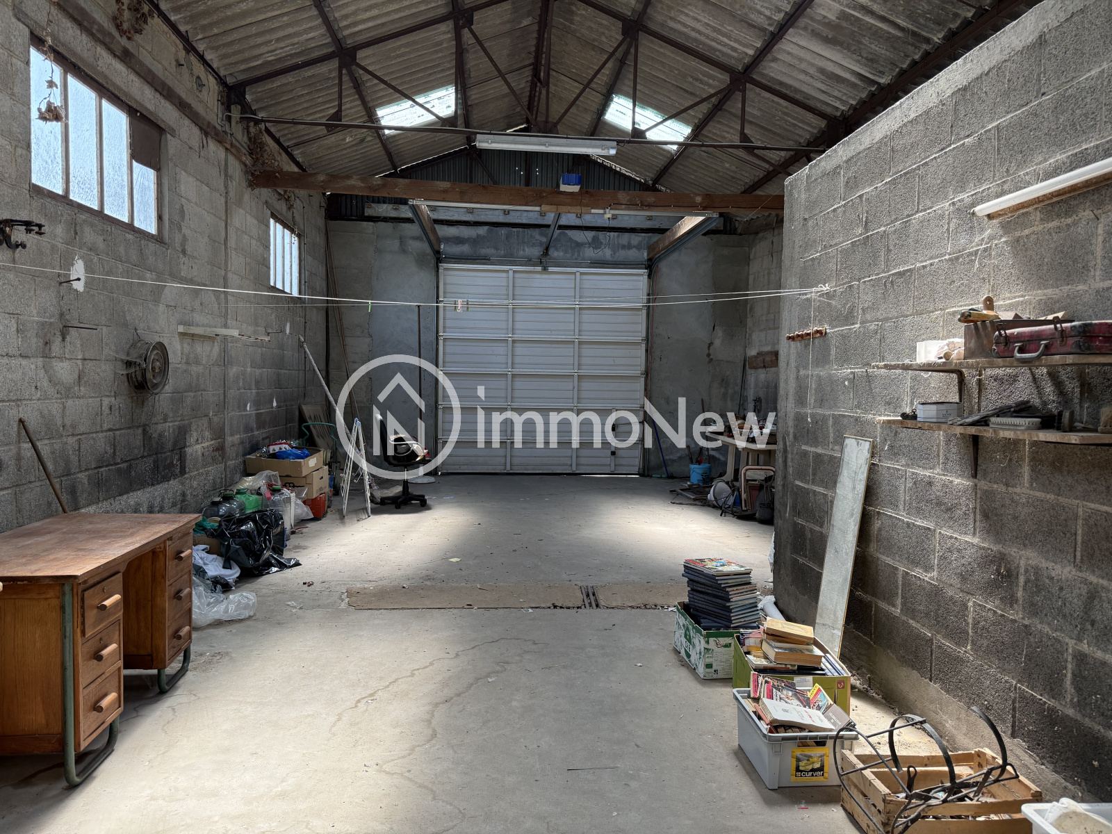 À l’extérieur, vous profitez d’une agréable terrasse, d’un cabanon de jardin et surtout d’un vaste garage, idéal pour un artisan, un collectionneur ou pour un projet professionnel, grâce à sa grande hauteur et sa large porte.