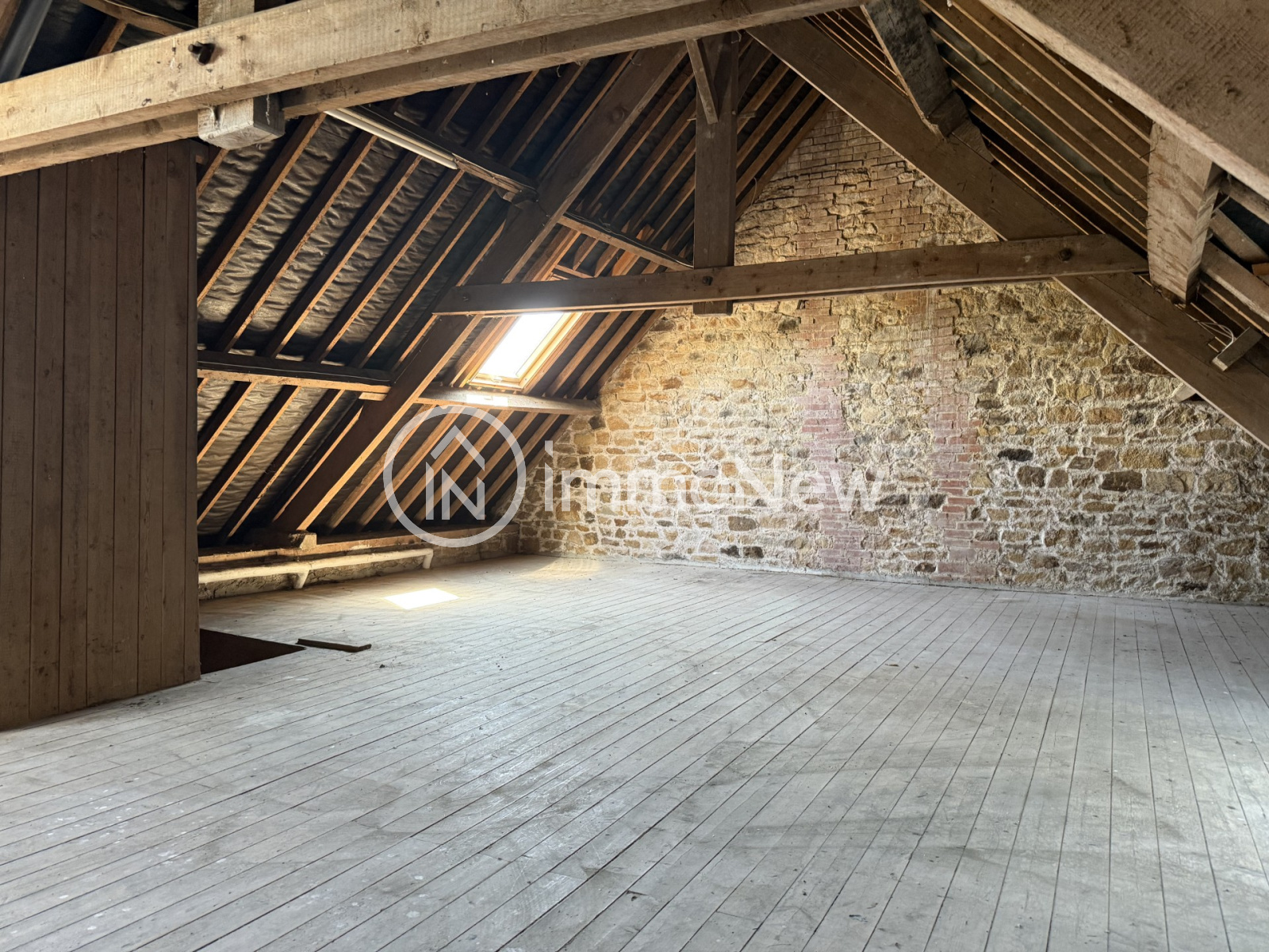 Le dernier niveau, actuellement un grenier spacieux, dispose déjà de deux Velux et d’une fenêtre chien assis, offrant la possibilité de créer deux chambres supplémentaires et une salle d’eau.