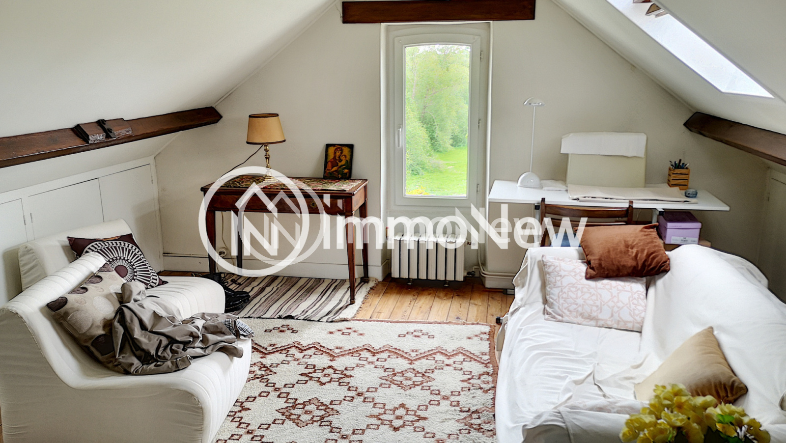 Saint-Jean-le-Thomas (50530)Immonew vous propose cette Maison de Charme idéalement située au coeur de ST JEAN LE THOMAS, de 112 m2 sur 4 niveaux, avec jardin arboré de 925 m2, un garage, composée de :