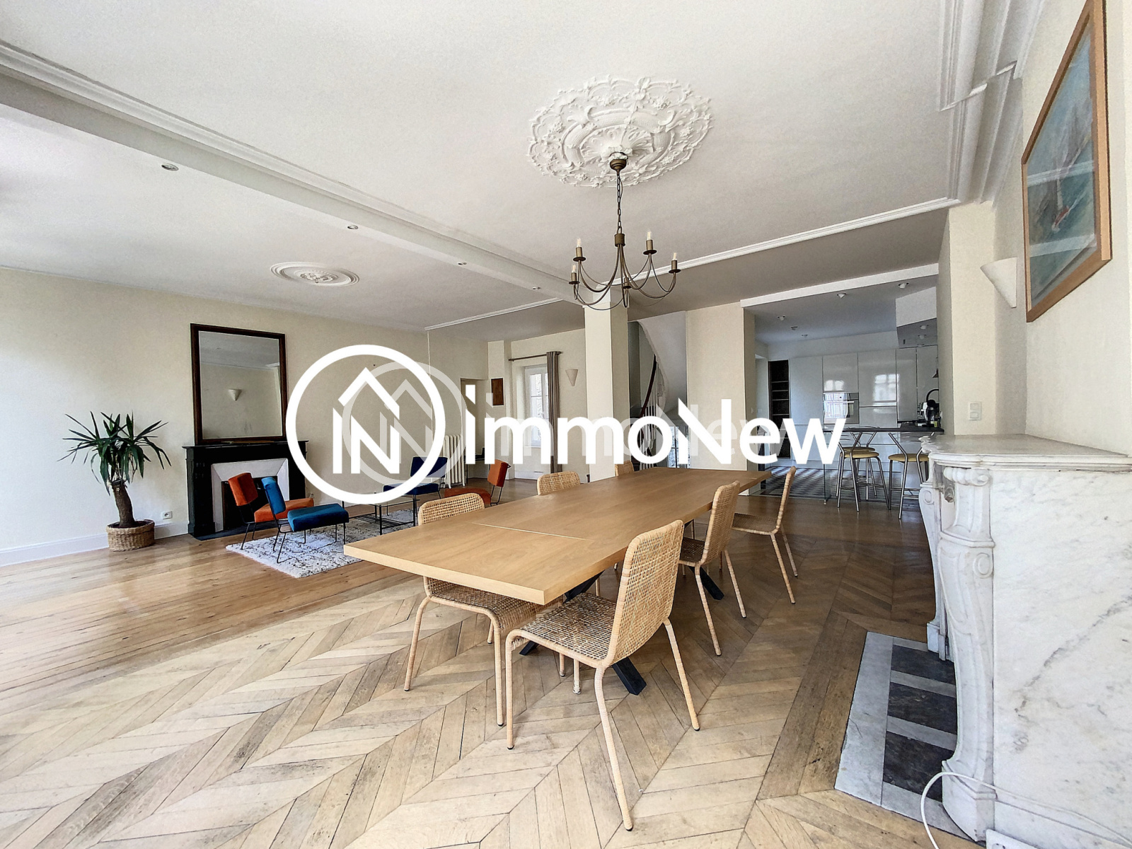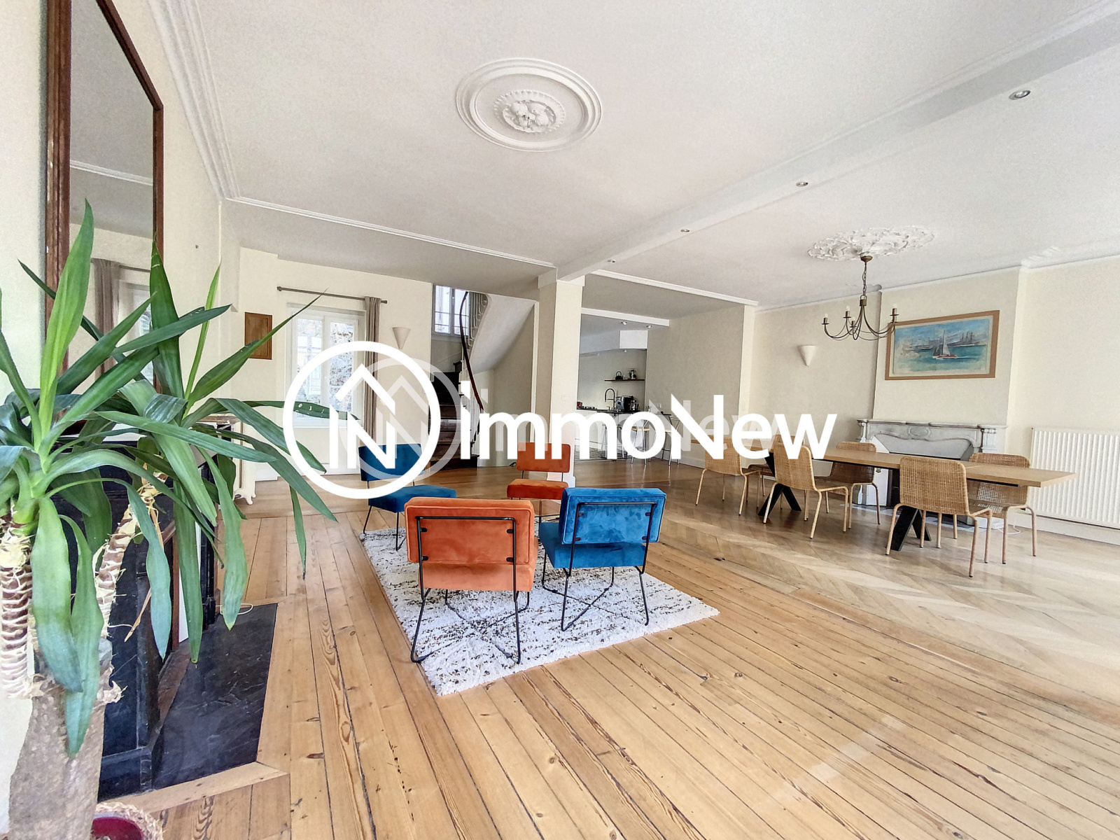 Granville (50400)IMMONEW vous présente cette charmante maison de ville, idéalement située au coeur du centre ville de GRANVILLE avec une belle exposition, dans un quartier privilégié, proche du Plat Gousset. Sa superficie totale est de 237m² environ et se répartit sur quatre niveaux ouvrant sur une cour intérieure privative d'environ 45m² sans vis-à-vis. Au rez-de-chaussée, un hall d'entrée qui dessert un dressing, un toilette, une pièce chaufferie et une pièce vous permettant un aménagement bureau ou chambre. Au premier étage, une très belle pièce de vie avec son parquet d'environ 53 m² ouverte sur un espace cuisine, aménagée et équipée fonctionnelle. Cette espace familiale comporte deux cheminées. Au second étage, le palier vous amène sur l'espace nuit composé de trois chambres, une salle de bain avec toilette, une petite pièce dressing. Les deux chambres côté SUD proposent un rangement intégré, et vous pouvez percevoir du balcon une belle vue dégagée. Au troisième étage, un palier desservant un espace nuit composé de trois chambres dont deux côté SUD avec vue très agréable, une petite pièce de rangement et une salle d'eau avec toilette. L'ensemble vous offrant une belle luminosité, un charme intérieur très cosy avec une belle hauteur sous-plafond et de beaux parquets.