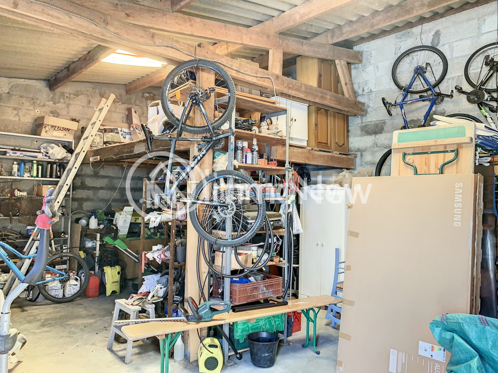 Un garage attenant, un garage non attenant, une terrasse, une cave sur vide sanitaire, un abris de jardin et un jardin.