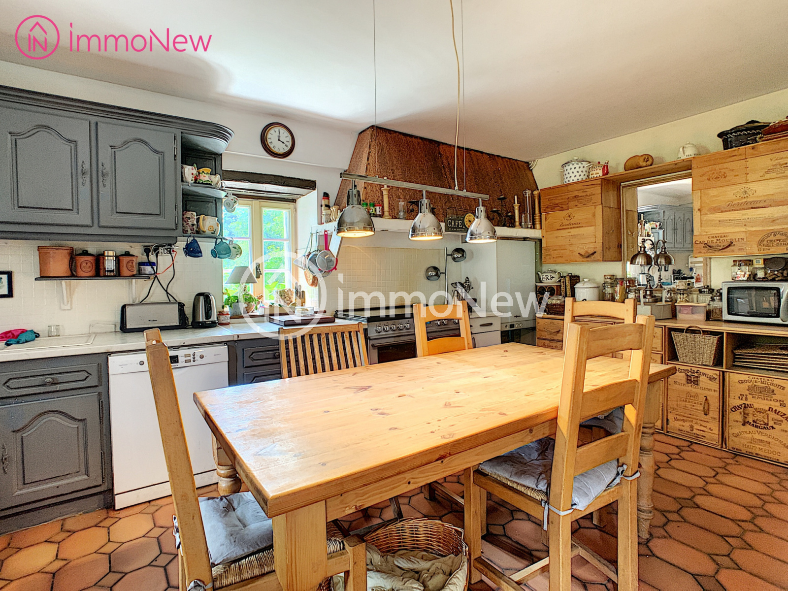 Au rez-de-chaussée : une entrée, une cuisine équipée et aménagée, une salle à manger avec cheminée, un séjour avec cheminée, une véranda, un WC,