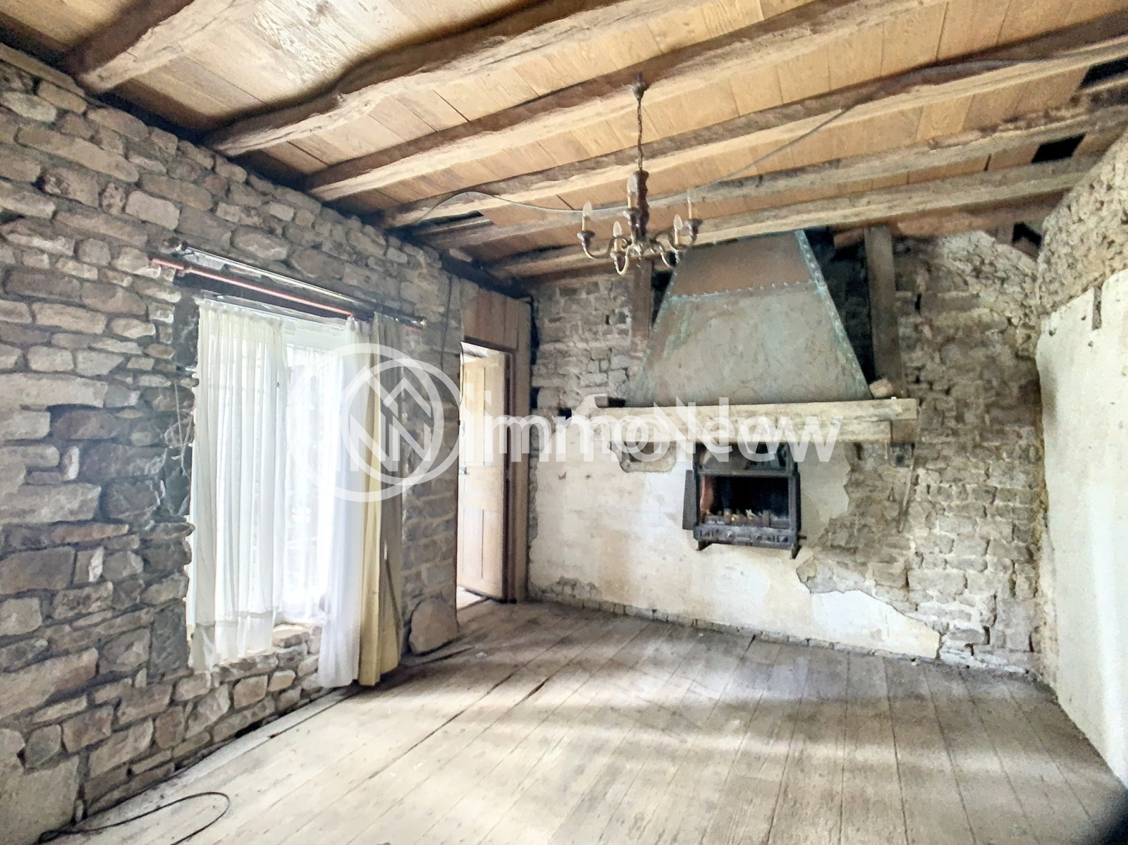 A l'étage : 4 pièces à rénover dont deux avec cheminées. La toiture est en bon état. Le bien est à rénover entièrement.
