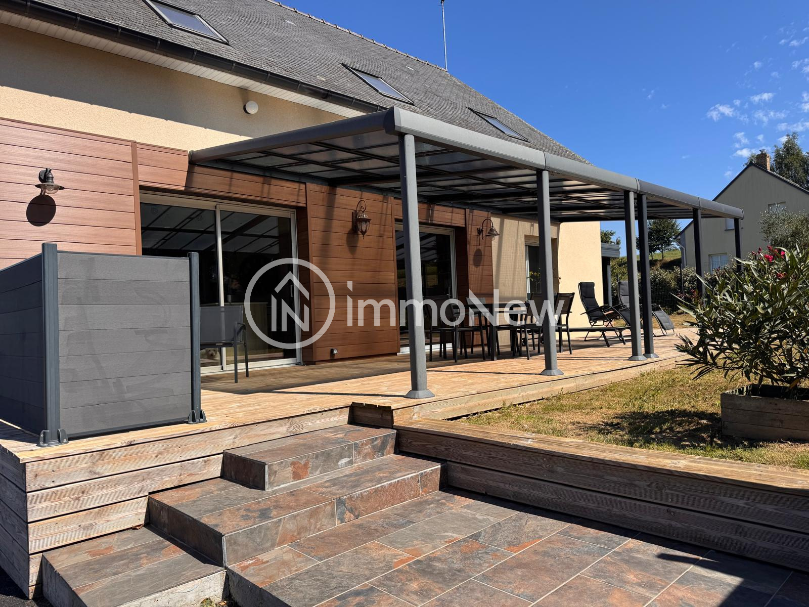 Isigny-le-Buat (50540)IMMONEW vous présente sur la commune de CHALANDREY, à 20 minutes du mont st Michel, à 20 minutes d'Avranches, à 5 minutes de ducey les chéris, ce beau pavillon construit en 2002 d'une surface de 155 m2 sur une surface de 3 300 m2 environ. Ce pavillon avec la possibilité d'une vie de plain-pied se compose au rez-de-chaussée d'un grand séjour salon de 40 m2 avec son poêle à granulés, une grande cuisine ouverte entièrement équipée (four, micro onde, réfrigérateur intégré...) et accès direct sur une buanderie grâce à la porte coulissant style verrière, un wc, une chambre. La buanderie peut-être transformée en salle d'eau (évacuations et arrivées d'eau prévues sur place). À l'étage, un palier, deux chambres, un dressing, un wc et une salle de bain, placard. On retrouve également au rez de la chaussée de la maison, une véranda ou on peut installer en sécurité un jacuzzi grâce aux évacuations déjà prévues. En sous-sol, un grand garage deux voitures, un atelier, un espace débarras. Sur les extérieurs, on retrouve une belle terrasse exposée plein sud avec sa pergola, une cour goudronnée qui donne sur l'arrière de la maison et le terrain, une serre, un système de récupération d'eau et un beau terrain avec son verger. Parfaitement équipée avec des matériaux de qualité, cette maison vous propose un portail avec digicode et visiophone, fenêtres PVC doubles vitrage, poële à granulés haut de gamme, récupérateur d'eau, etc... Si ce bien vous intéresse, contactez votre conseiller EI Thomas Lemarechal au [Coordonnées masquées], E-mail: [Coordonnées masquées], agent commercial en immobilier immatriculé au RSAC de Coutances sous le numéro 750 065 682