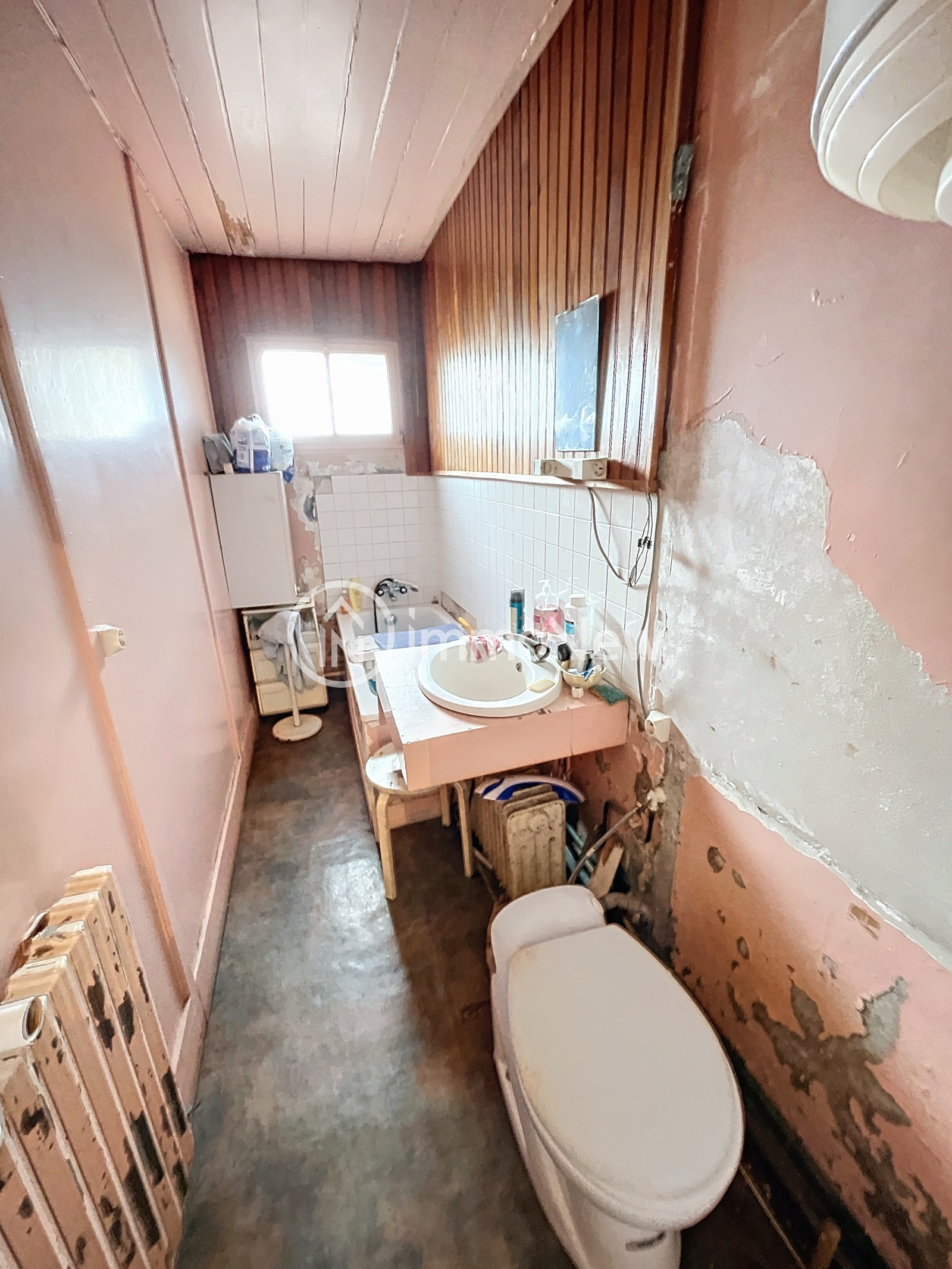 - Au rez-de-chaussée : d'un appartement actuellement loué (libre début février), composé d'un grand séjour et d'une cuisine, d'un WC et d'une salle d'eau.