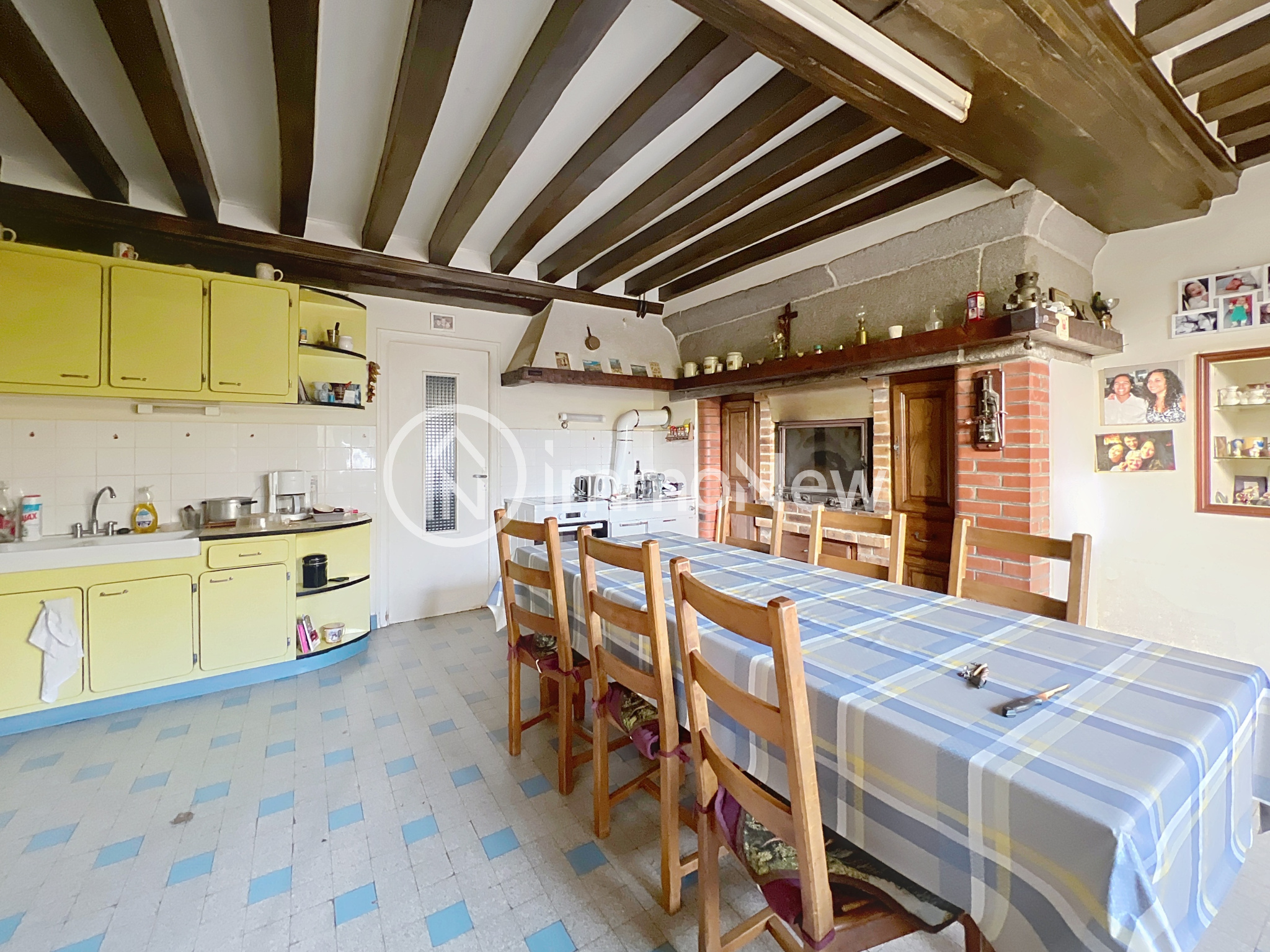 Cette grande Maisons de famille se compose d'une entrée, d'une cuisine aménagée avec cheminée équipée d'un insert, une salle / salon de 32 m2 avec cheminée, une buanderie , un wc.