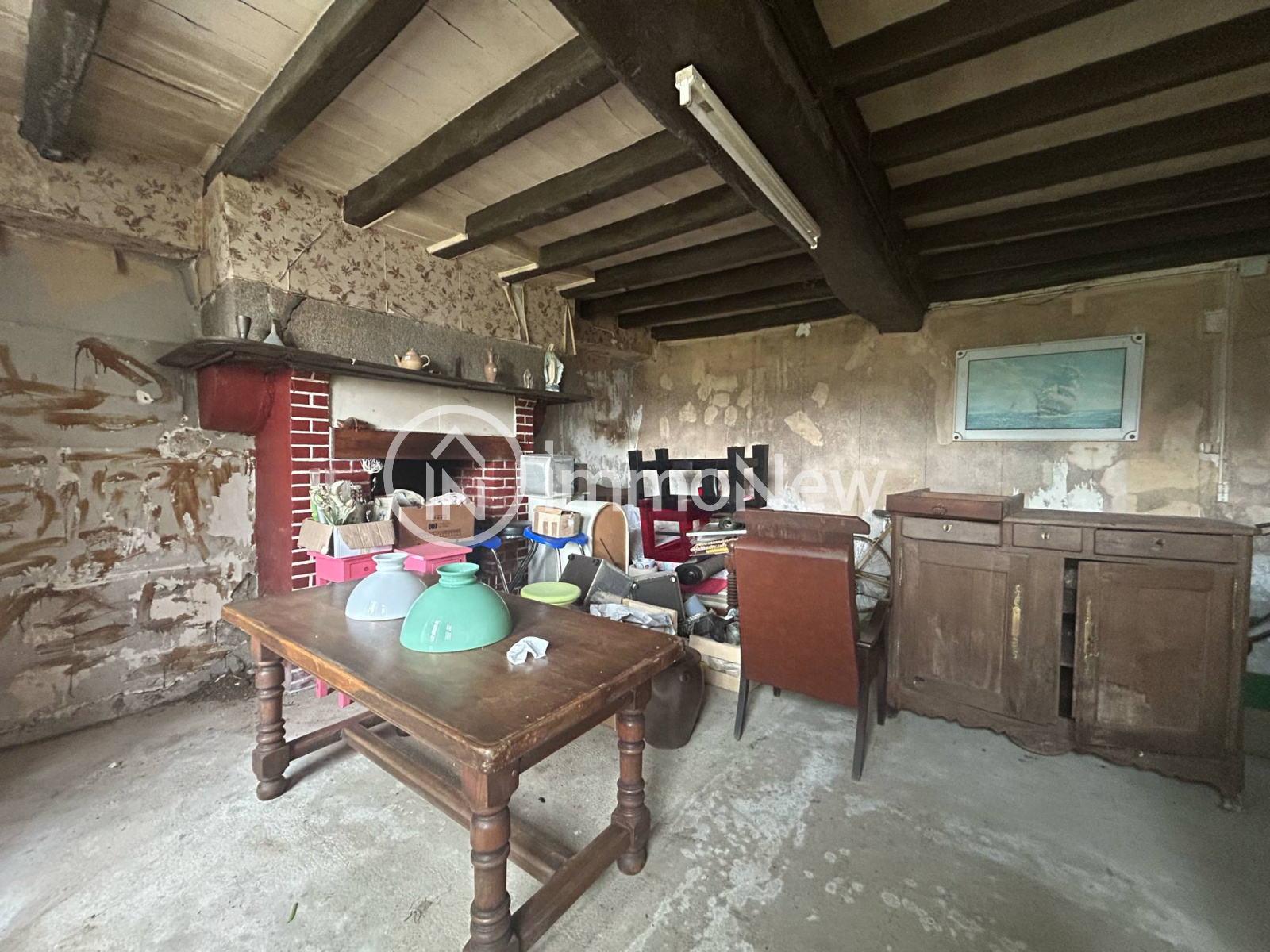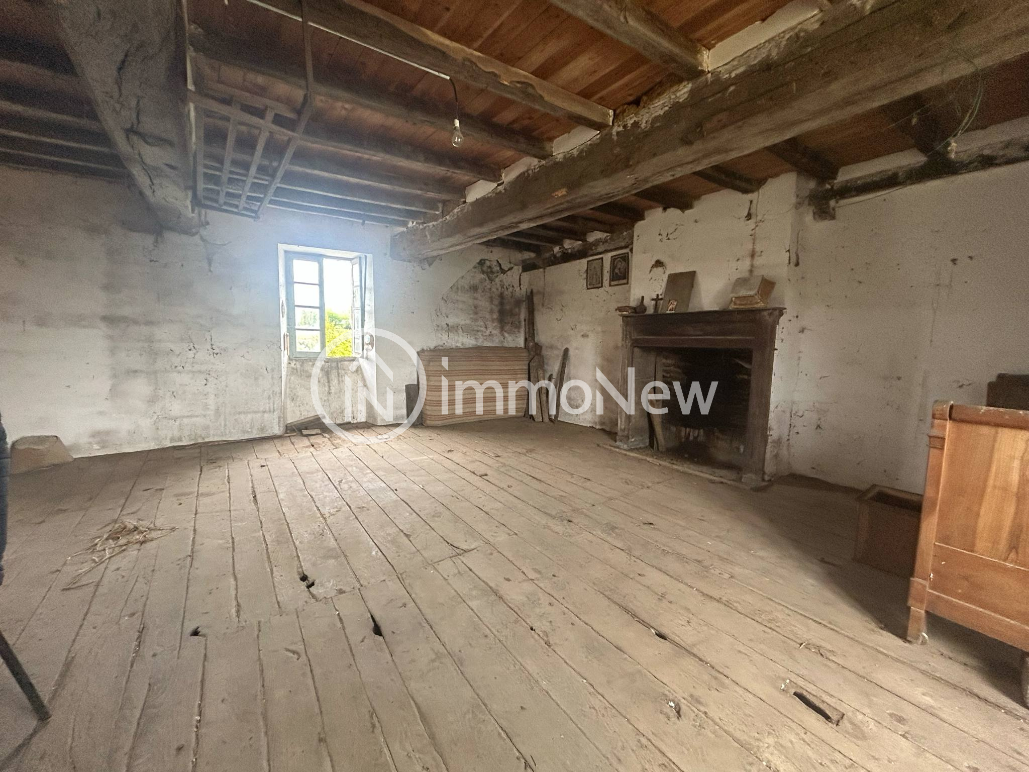 - A l'étage : deux grandes pièces avec débarras et une cheminée dans chaque pièce.