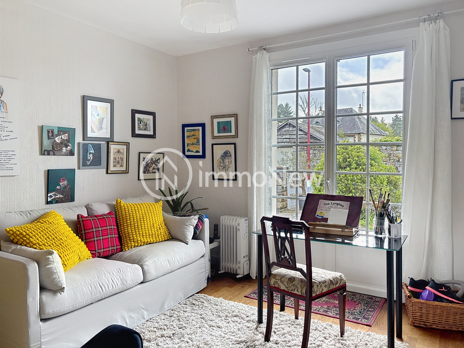 Au rez-de-chaussée, vous découvrirez une entrée, un salon / salle à manger lumineux, une cuisine équipée, ainsi qu’une salle de bain complète (douche et baignoire), un WC indépendant et une chambre (actuellement en atelier peinture / deuxième salon), permettant une vie de plain-pied appréciable.