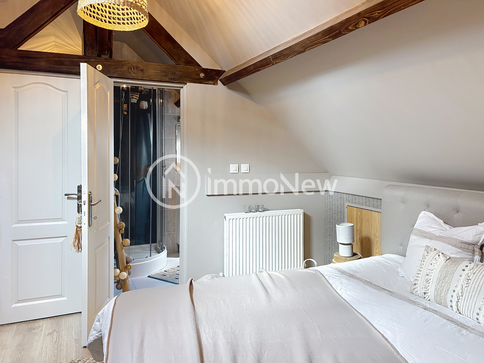 Saint-Pois (50670)IMMONEW vous présente sur la commune de SAINT POIS, au cœur du bourg proche de toutes les commodités, au calme avec un cadre paisible et bucolique, cette belle maison pierre de 134 m2 répartie sur un terrain de 1700 m2 environ. Cette maison se compose au rez-de-chaussée d'une cuisine équipée avec son îlot central faite avec des matériaux de qualité, une belle salle à manger, un beau salon cocon avec sa cheminée majestueuse en granit, un wc.. À l'étage, d'un côté une chambre avec sa salle de bain et wc, de l'autre une autre chambre avec une pièce pouvant être transformé en salle de bain. Au dernier étage sous les combles, une suite parentale avec sa salle d'eau décorée avec raffinement. Attenante à la maison un ancien fumoir aménagé en pièce de réception pour les amis. Cette partie comporte deux étages qui peuvent également être aménagés. En face la maison, on retrouve un beau garage de 30 m2 environ et une cave à vin. Sur le terrain, belle terrasse en surplomb avec une vue dégagée sur les bois. Dans cet espace, une piscine peut y être installée. En contre bas, on retrouve une mare et un beau jardin. Si ce bien vous intéresse,Contactez votre conseiller EI Thomas Lemarechal au [Coordonnées masquées], E-mail: [Coordonnées masquées], agent commercial en immobilier immatriculé au RSAC de Coutances sous le numéro 750 065 682