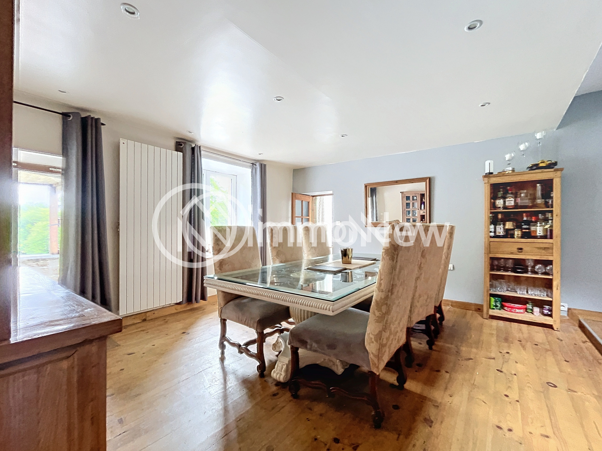 - Séjour de 30 m² avec poêle à bois intégré dans une majestueuse cheminée en granit