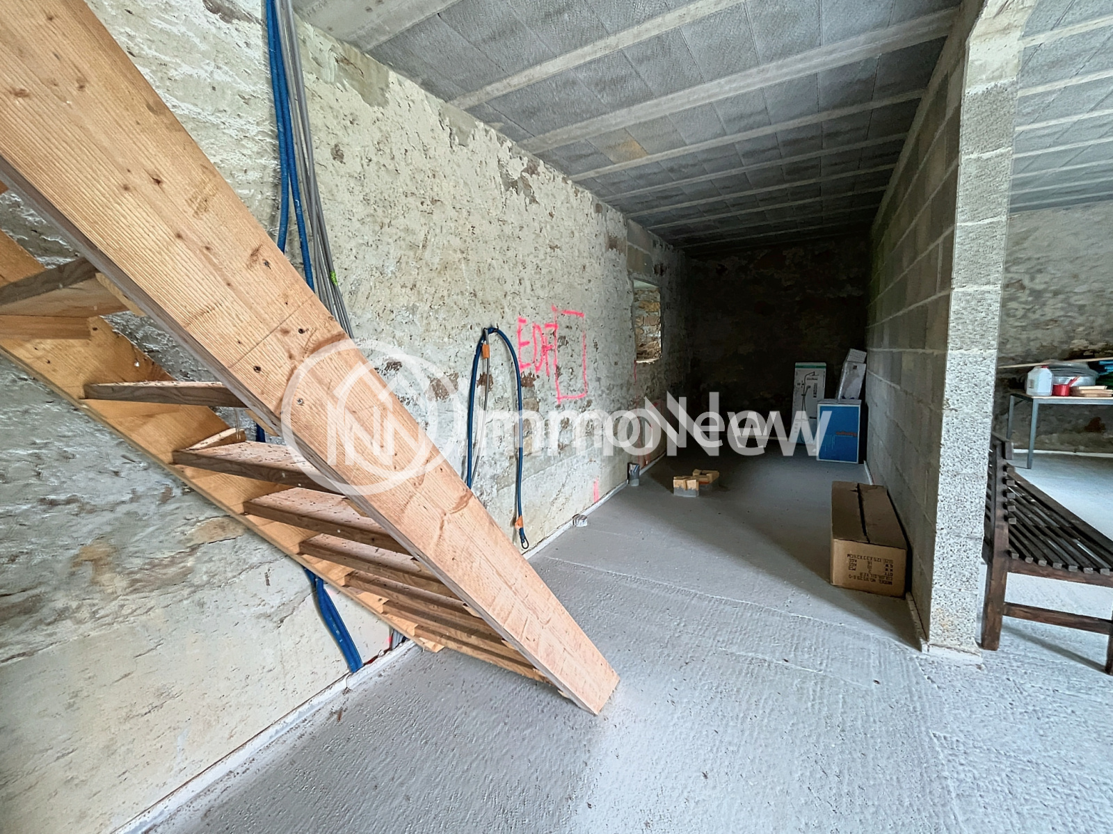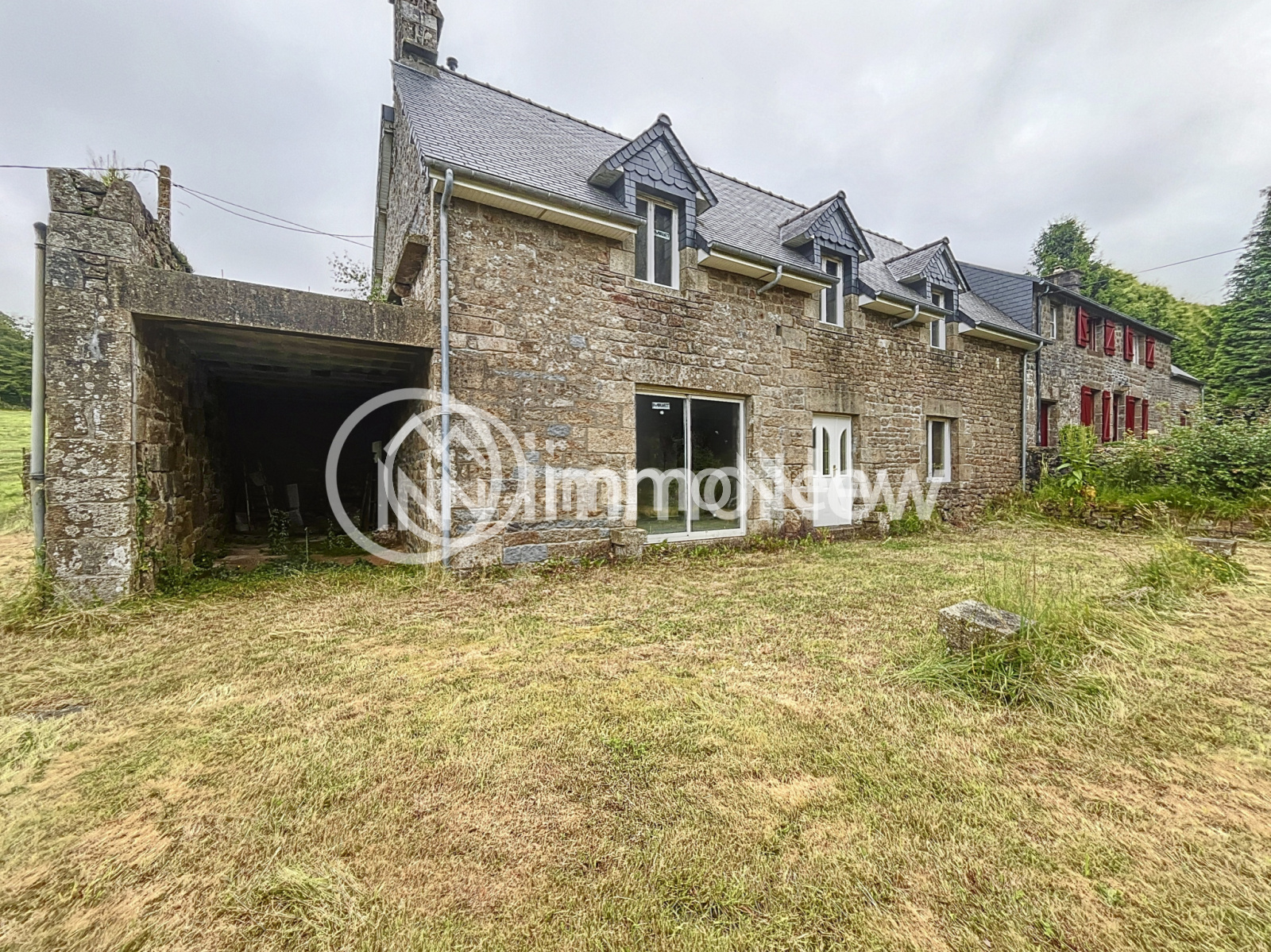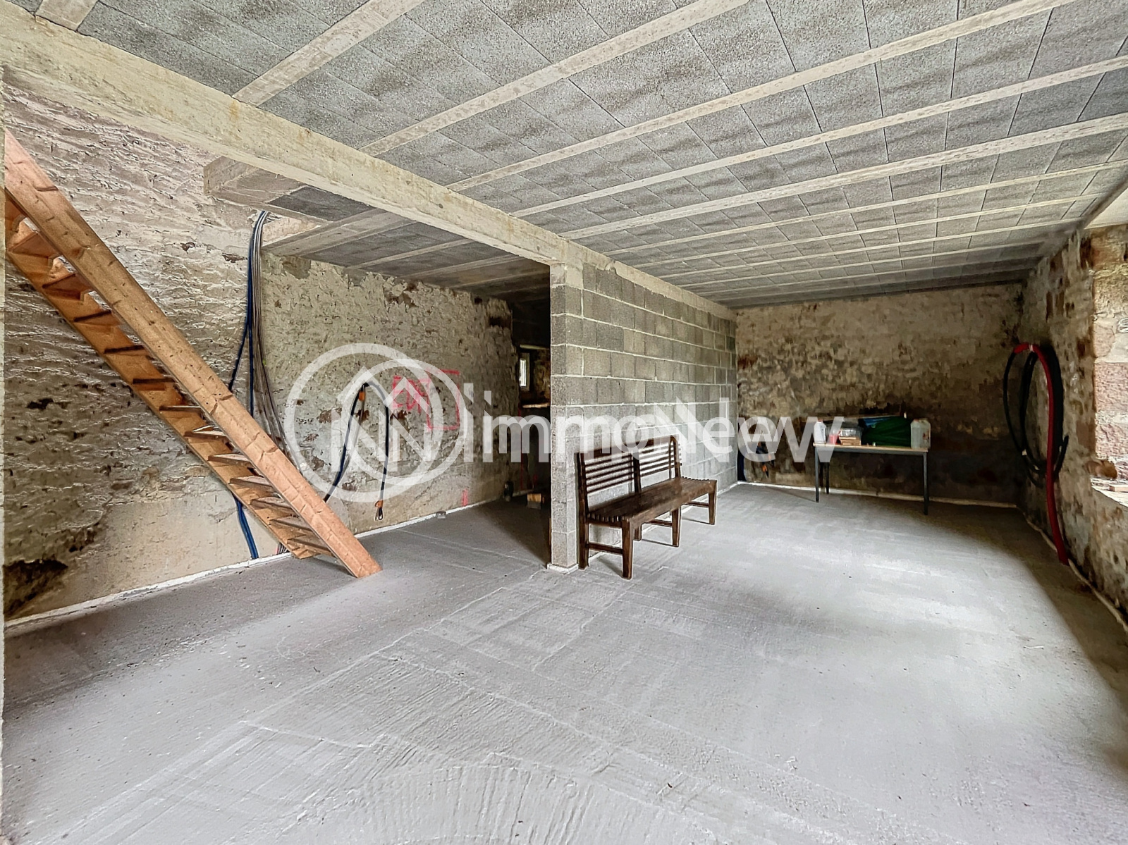 La seconde maison, entièrement rénovée en gros œuvre, offre une surface de 70 m² au rez-de-chaussée avec une grande pièce à vivre et une cheminée en granit. À l’étage, un espace de 50 m² attend d'être aménagé en chambres et salle de bain.