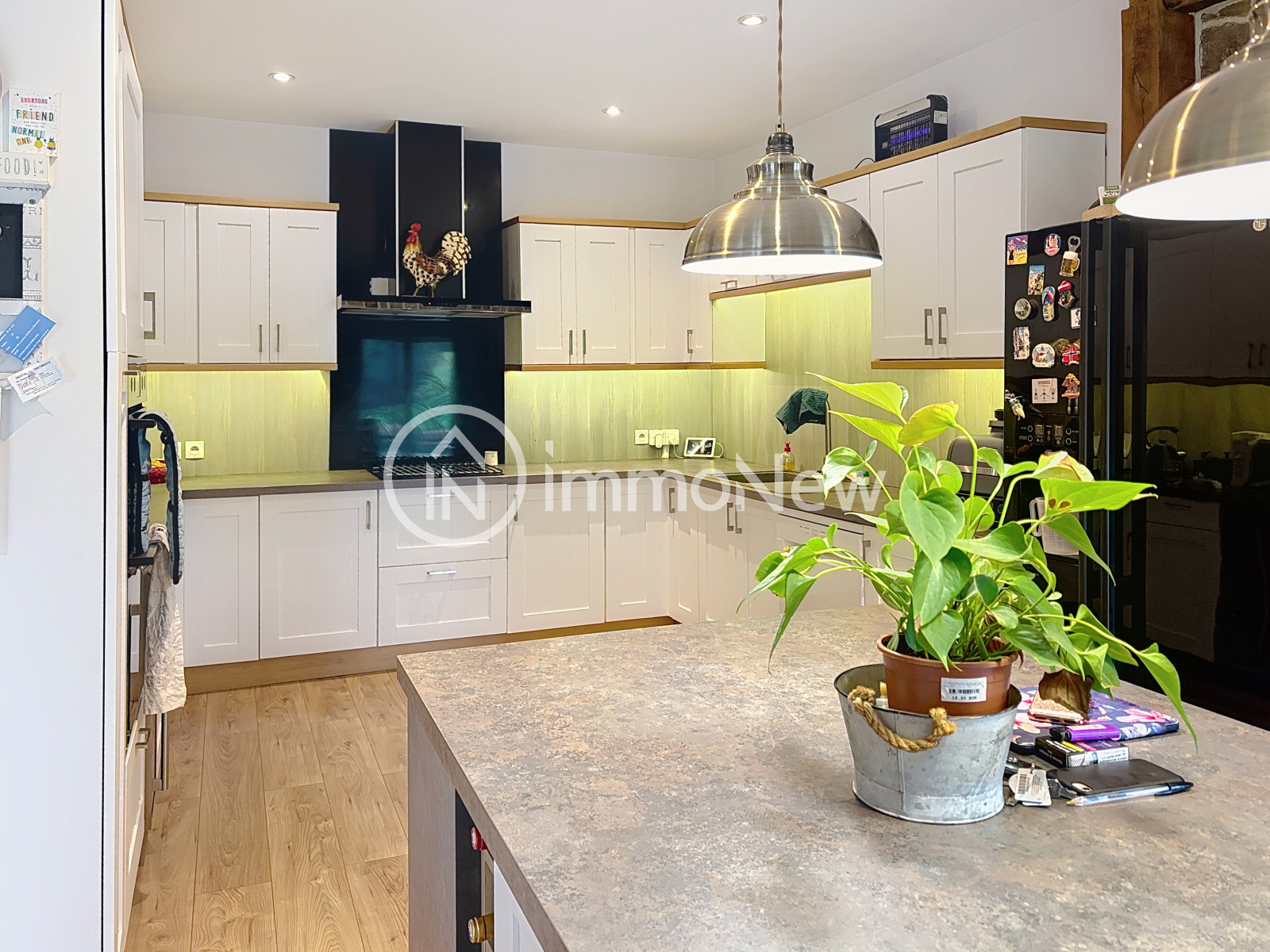 Perriers-en-Beauficel (50150)IMMONEW vous présente sur la commune de PERRIERS EN BEAUFICEL, à 15 minutes de vire, à 10 minutes de sourdeval, dans un hameau de 3 maisons au milieu d'un cadre champêtre et calme, cette superbe maison d'une surface de 142 m2 sur un beau terrain de 7 000 m2. Au rez-de-chaussée, on retrouve un grand espace comprenant une cuisine ouverte avec îlot central et enterrement équipée, une salle à manger, un salon avec sa belle cheminée granit et son poêle. Depuis le salon, on peut accéder à la terrasse extérieure. Sur le même niveau, se situe une buanderie. De par l'escalier, on accède au premier étage qui donne sur un grand couloir de distribution. Totalement à gauche, belle suite parentale comprenant en partie centrale la chambre, et chaque côté la salle d'eau et le dressing. Depuis le couloir, on accède à deux chambres et une salle de bain. Enfin au fond du couloir, une grande chambre avec salle d'eau. La maison exposée plein sud donne sur un grand terrain de 7 000 m2 où l'on retrouve une petite dépendance en pierre, un grand garage d'environ 30 m2 avec en continuité un garage. L'ensemble est entièrement clôturé et fermé par un portail.