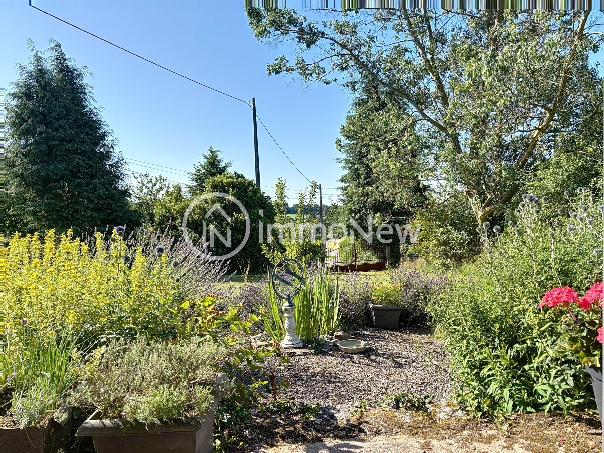 Le terrain joliment fleuri, entièrement clôturé et arboré, dispose d’un espace piscine en cours d’aménagement, parfait pour les beaux jours.