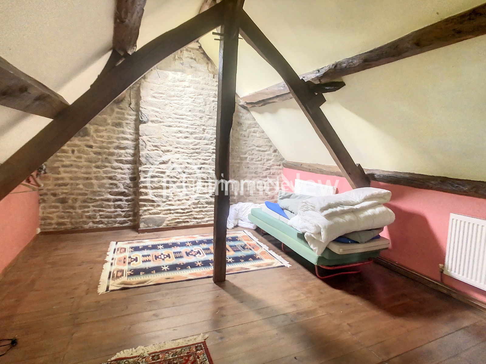 Saint-Barthélemy (50140)IMMONEW vous présente sur la commune de SAINT BARTHELEMY, .A 5 km de sourdeval, A 5 km de mortain, sur la commune de st barthelemy, dans un endroit calme, nature, sans voisin proche, sans vis à vis, idéal pour les amoureux de la nature, des animaux ou pour activite de permaculture ou de maraichage, retrouvez cette belle maison pierre de 82m2 de surface habitable sur un terrain de 56860 m2. Cette maison se compose au rez de chaussée d'un séjour/salle manger avec insert, une entrée, une salle de bain et une cuisine. A l'étage, deux belles chambres sous mansardes et débarras. Sur les exterieurs, tout autour de la maison exposée plein sud, on retrouve tout d'abord une belle parcelle de 11900 m2 envrion sur lequel se situe un ruisseau et une mare, idéal pour l'aimentation en eau d'animaux ou l'activite de maraichage. A 100m de la maison, on a le reste des parcelles de terre avec une partie boisée de 5665 m2 (chêne, chataignier...) et des prés d'herbage de 39295 m2 environ. Ce bien est à vite découvrir pour les amoureux de la nature et des animaux. Prévoir l'assainissement à réfaire ainsi que la toiture (charpente en bon etat), isolation, menuiseries. SI ce bien vous interesse, Contactez votre conseiller EI Thomas Lemarechal au 06.30.25.73.87, E-mail: t.lemarechal.li@gmail.com, agent commercial en immobilier immatriculé au RSAC de Coutances sous le numéro 750 065 682