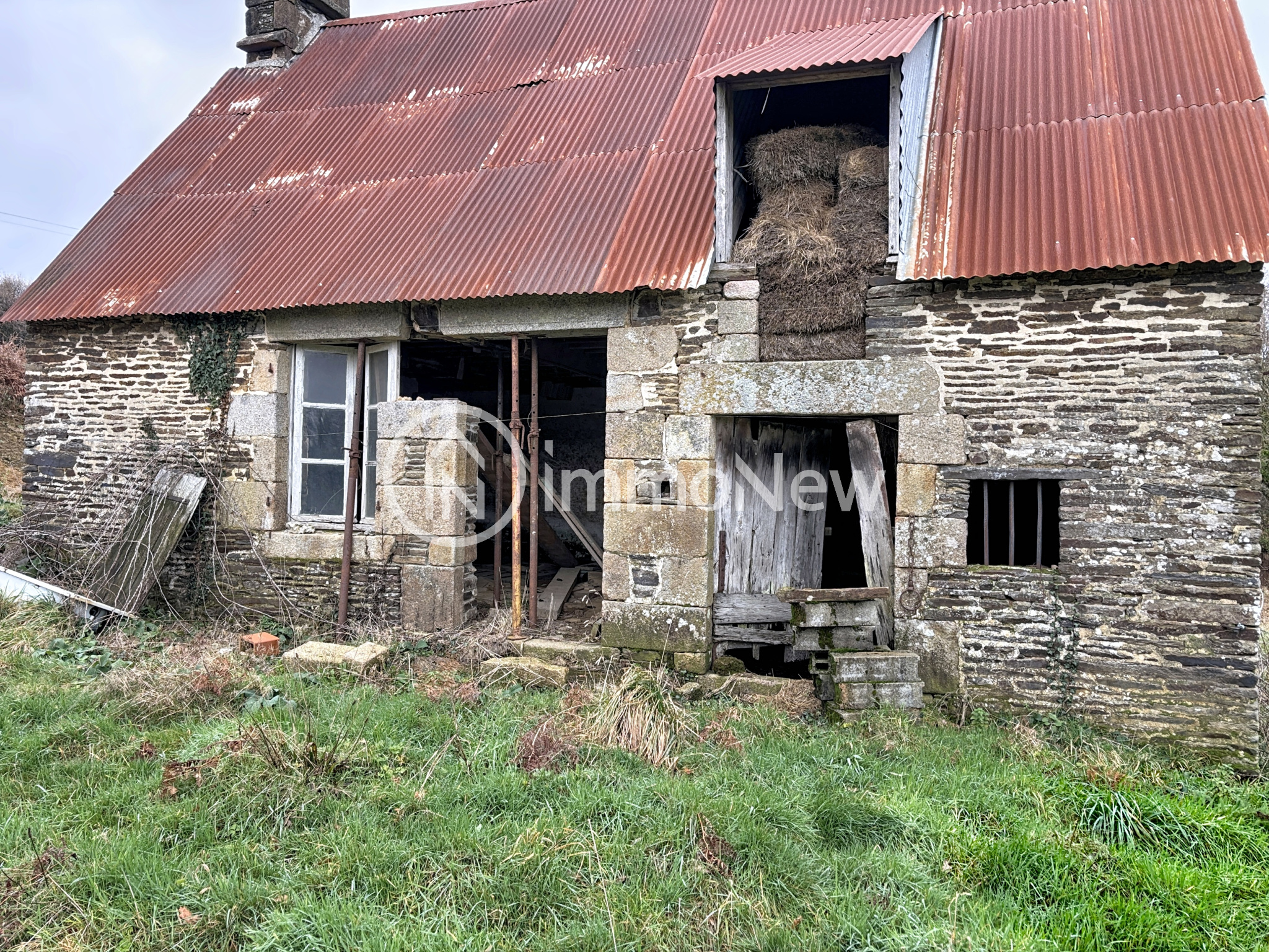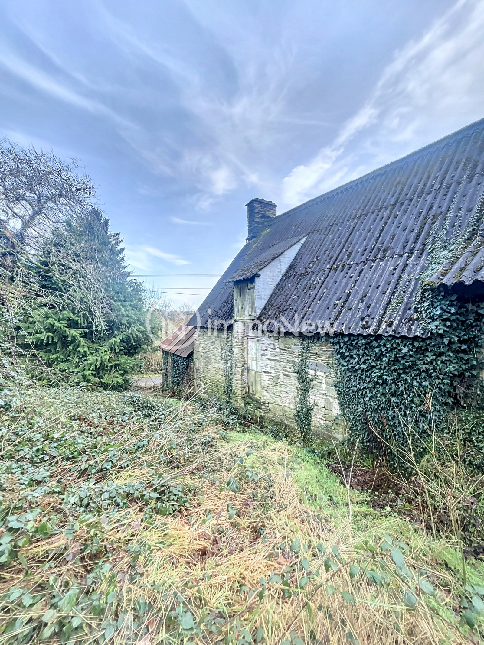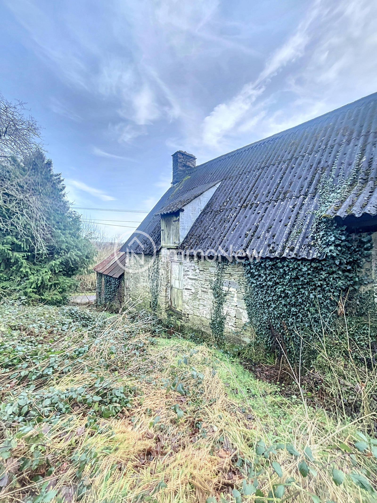 - En deuxième partie, mais attenante à la première parcelle, une grande longère d'environ 100 m2 pourvue en eau et en électricité sans assainissement, composé de 4 pièces avec cheminées. L'ensemble est répartie sur une parcelle de 3500 m2 environ.