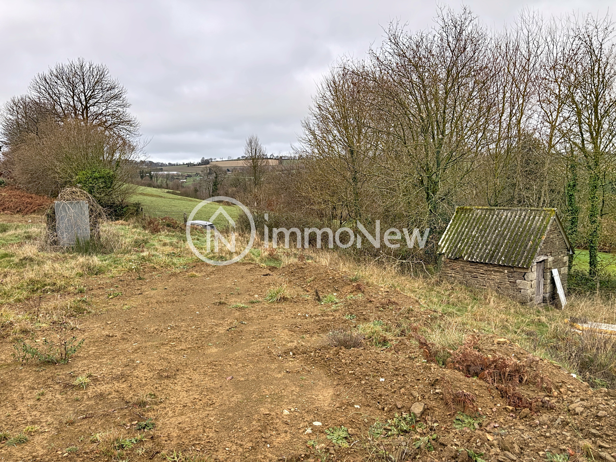 - une première partie avec son accès indépendant d'une maison en cours de rénovation, un puits, une dépendance et l'ensemble réparti sur une parcelle de 10 000 m2. L'ensemble est viabilisée et donc pourvu en eau et électricité, exposition sud-ouest, la vue donne sur la vallée de la sée.