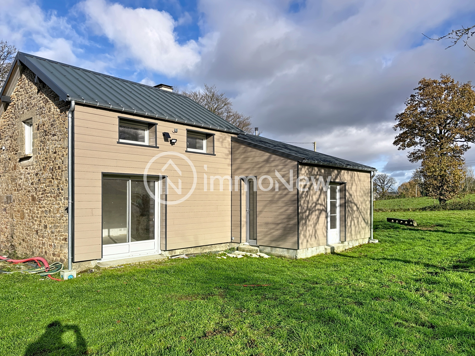 Villedieu-les-Poêles (50800)IMMONEW vous présente sur la commune de BOISYVON, à 10 minutes de VILLEDIEU LES POÊLES, cette maison entièrement rénovée d'une surface de 90 m2 sur un terrain de 13000 m2. Cette maison se compose au rez-de-chaussée d'un séjour salon avec sa pierre apparente, une cuisine, à équiper, une salle d'eau, un wc, deux chambres, et un accès au garage de 25 m2; A l'étage, une chambre et une salle d'eau. Sur les extérieurs un beau terrain de 13 000 m2 environ entièrement clôturé sur lequel on retrouve deux bâtiments. Tous les travaux sont récents (isolation, menuiserie, plomberie,électricité) et dispose également d'une fosse toute eaux neuves. Possibilité d'acquérir 3 hectares de terres agricoles en plus. Si ce bien vous intéresse, contactez votre conseiller EI Thomas Lemarechal au [Coordonnées masquées], E-mail: [Coordonnées masquées], agent commercial en immobilier immatriculé au RSAC de Coutances sous le numéro 750 065 682
